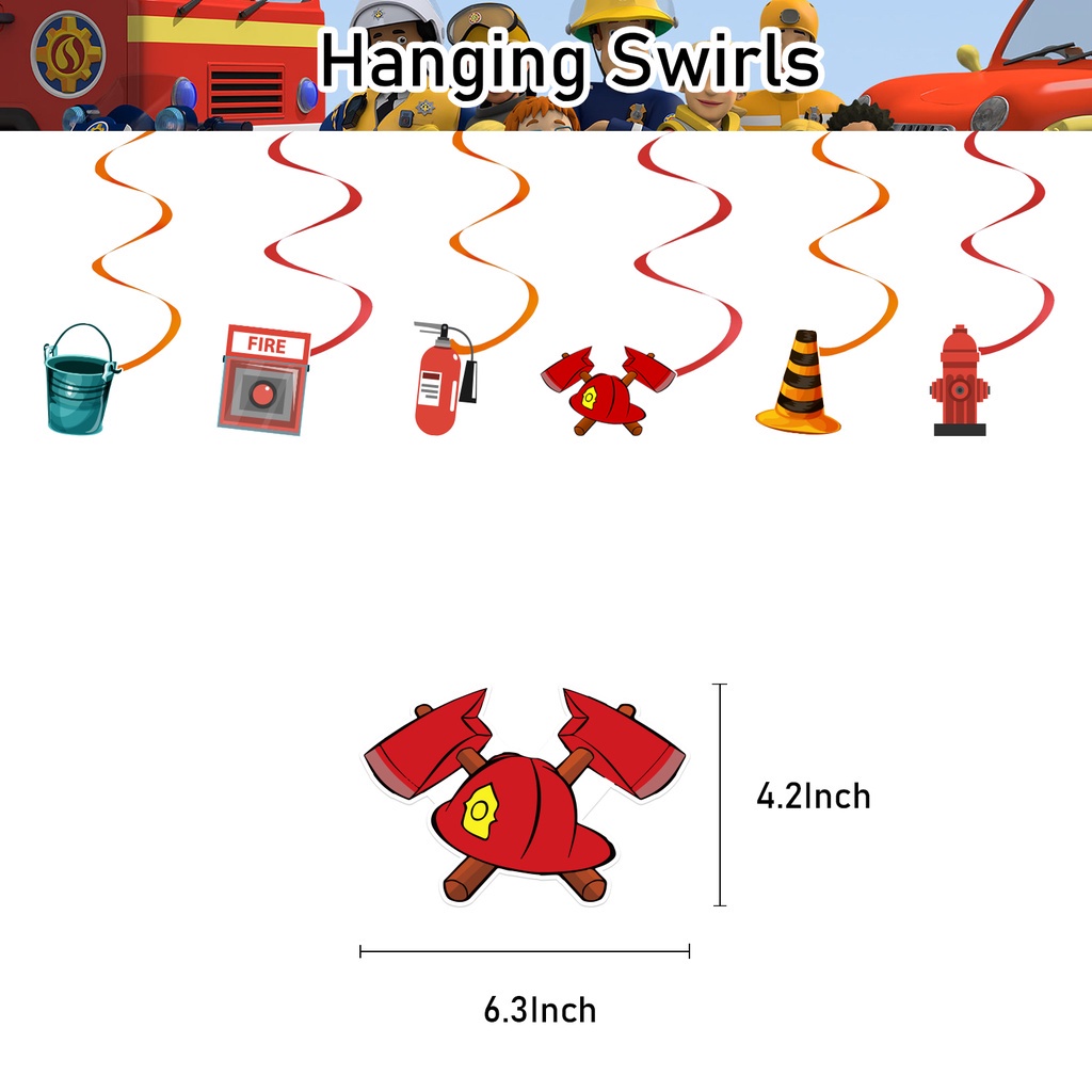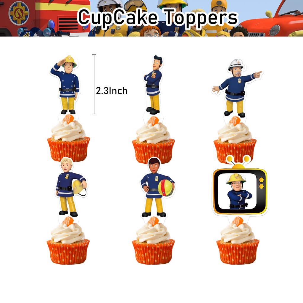 YP Fireman Sam Happy Birthday Banner Decoration Set Cake Topper Latex Balloons Cupcake Toppers