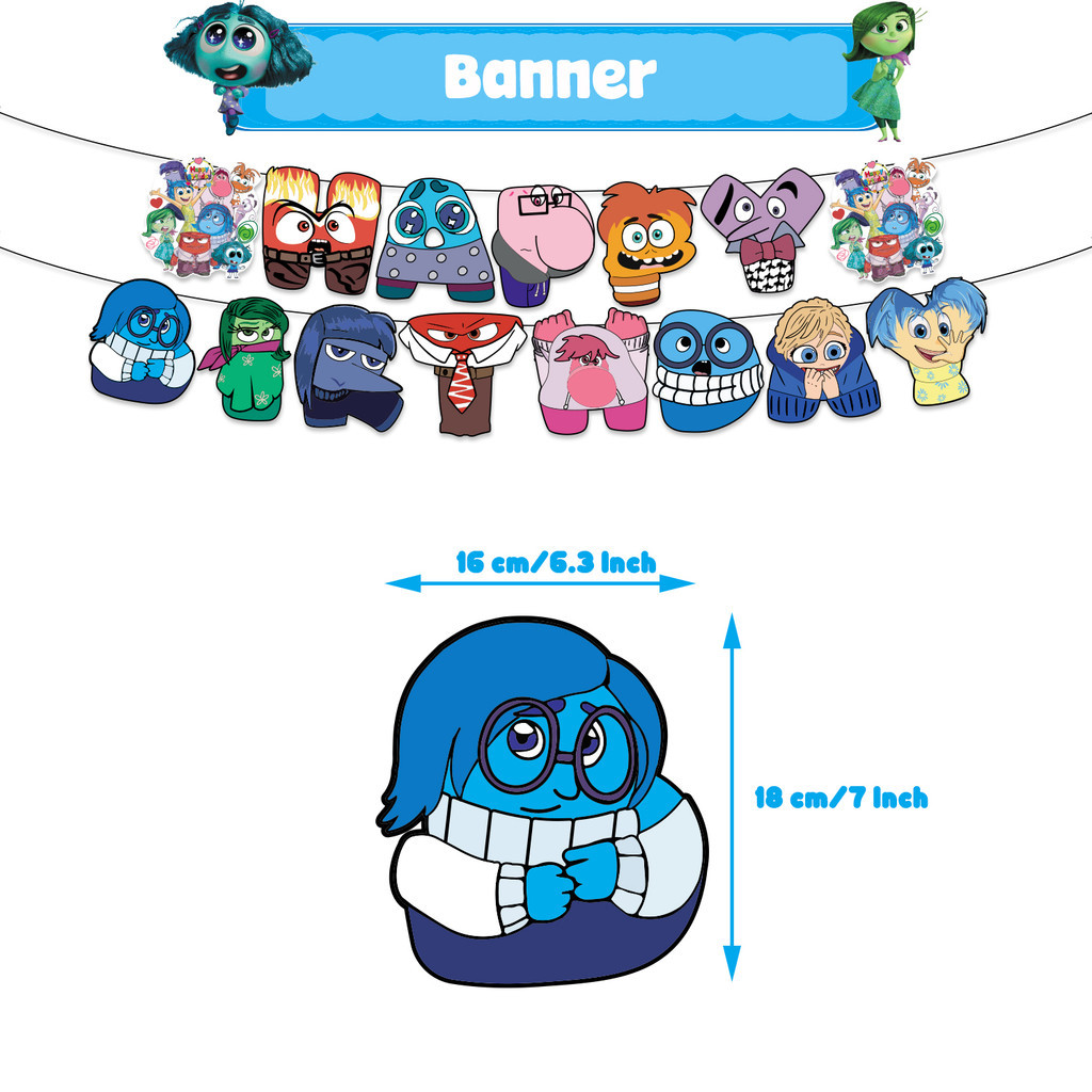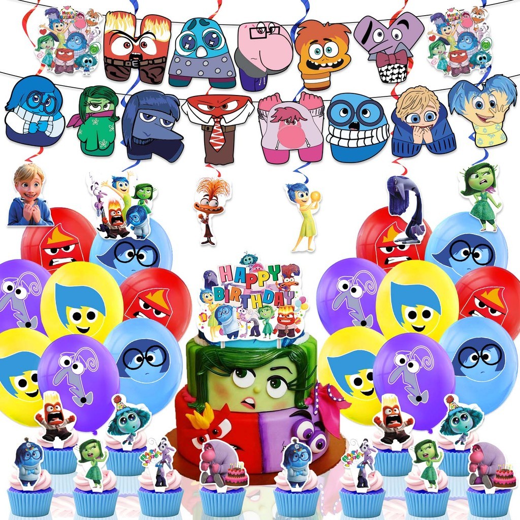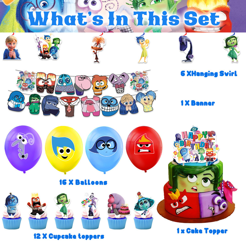 YP Inside Out Happy Birthday Banner Decoration Set Cake Topper Latex Balloons Cupcake Toppers