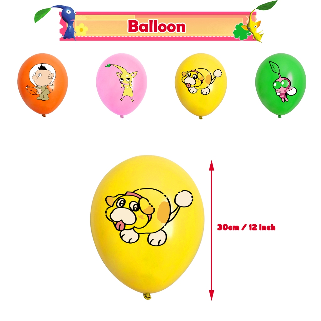 YP PIKMIN-4 Happy Birthday Banner Decoration Set Paper Cake Topper Latex Balloons Cupcake Toppers