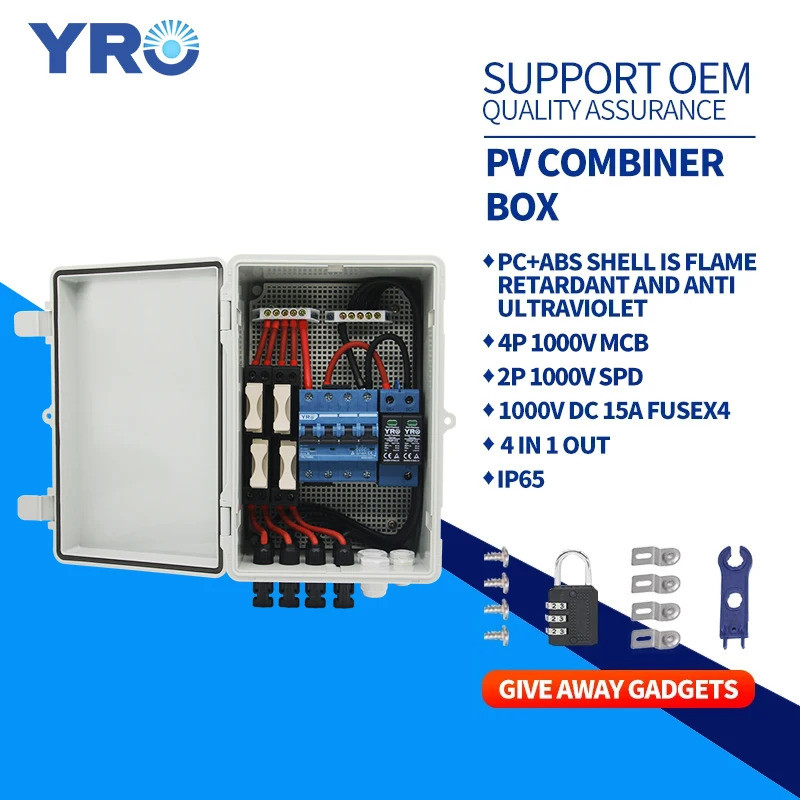 YRO 4 String Solar Panel Distribution Box 4 In 1 Out 550V PV Combiner Box Solar System Home Outdoor Wire Kit