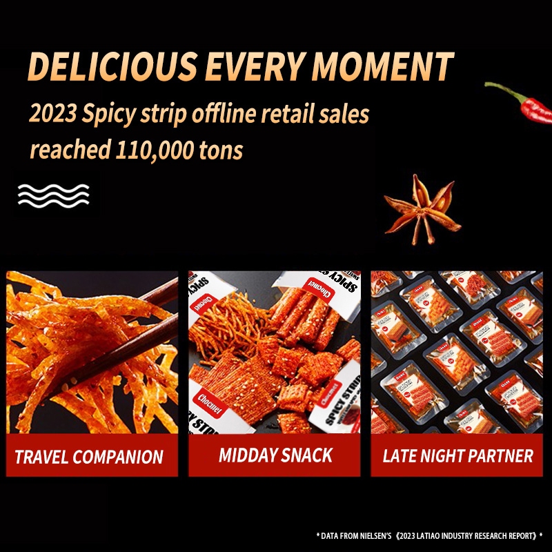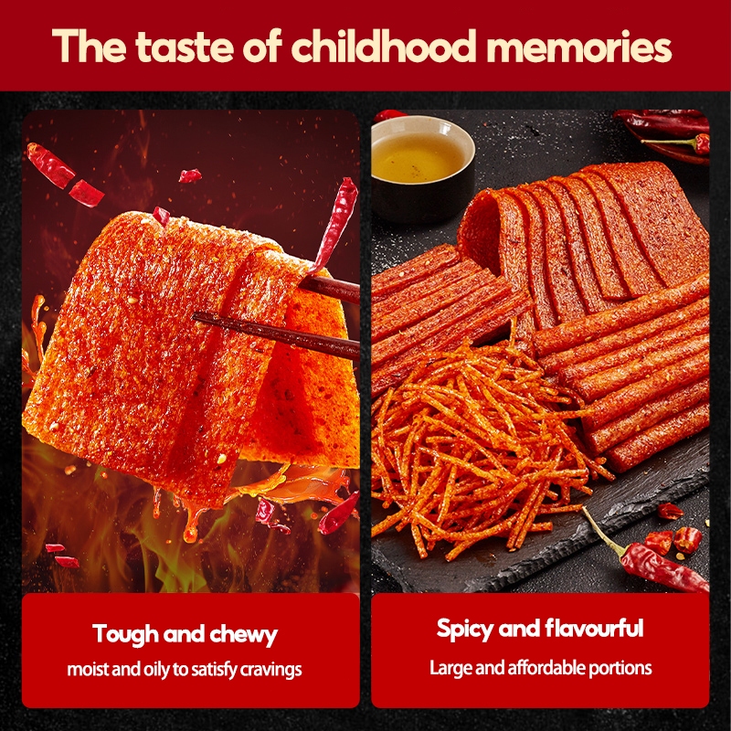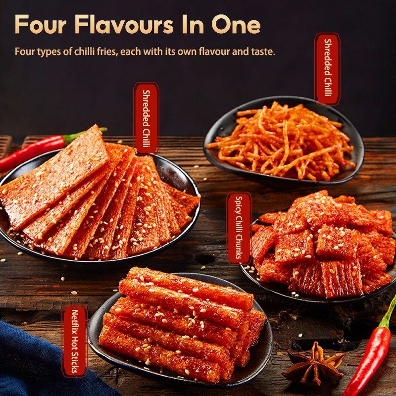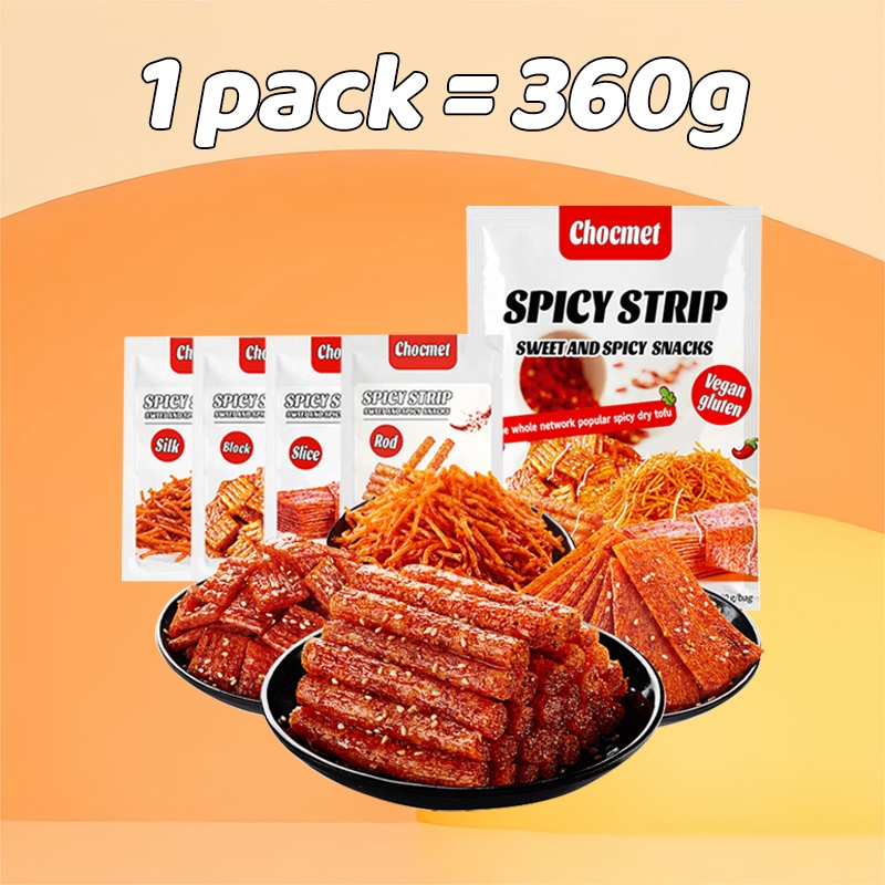 CHOCMET Spicy Stick 12pcs Latiao Snack 4 in 1 Spicy Strips Cube Chinese Snacks Halal Vegan 360g