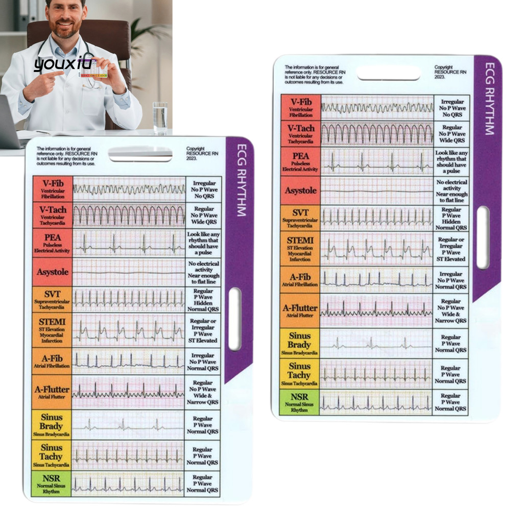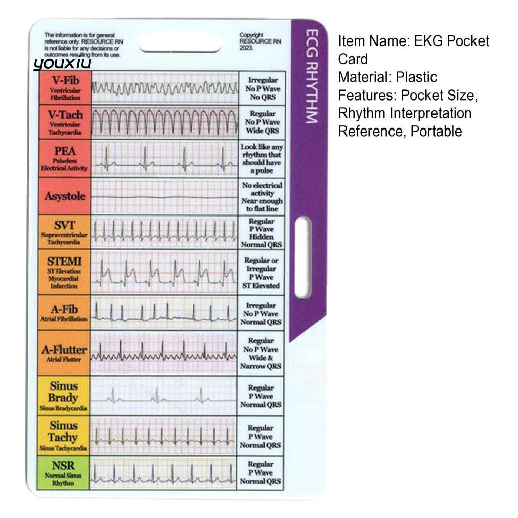 YX Portable Ekg Reference Card Ekg Rhythm Pocket Card Pocket Ekg Rhythm Interpretation Card for Nurses Students Double Reference Badge Card for Ecg Techs Portable