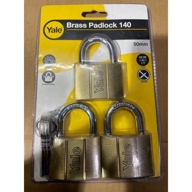 Yale Brass Padlock 3in1 (3Lock 1Key) 50mm Pad Lock Key Alike / All Locks 1 Key