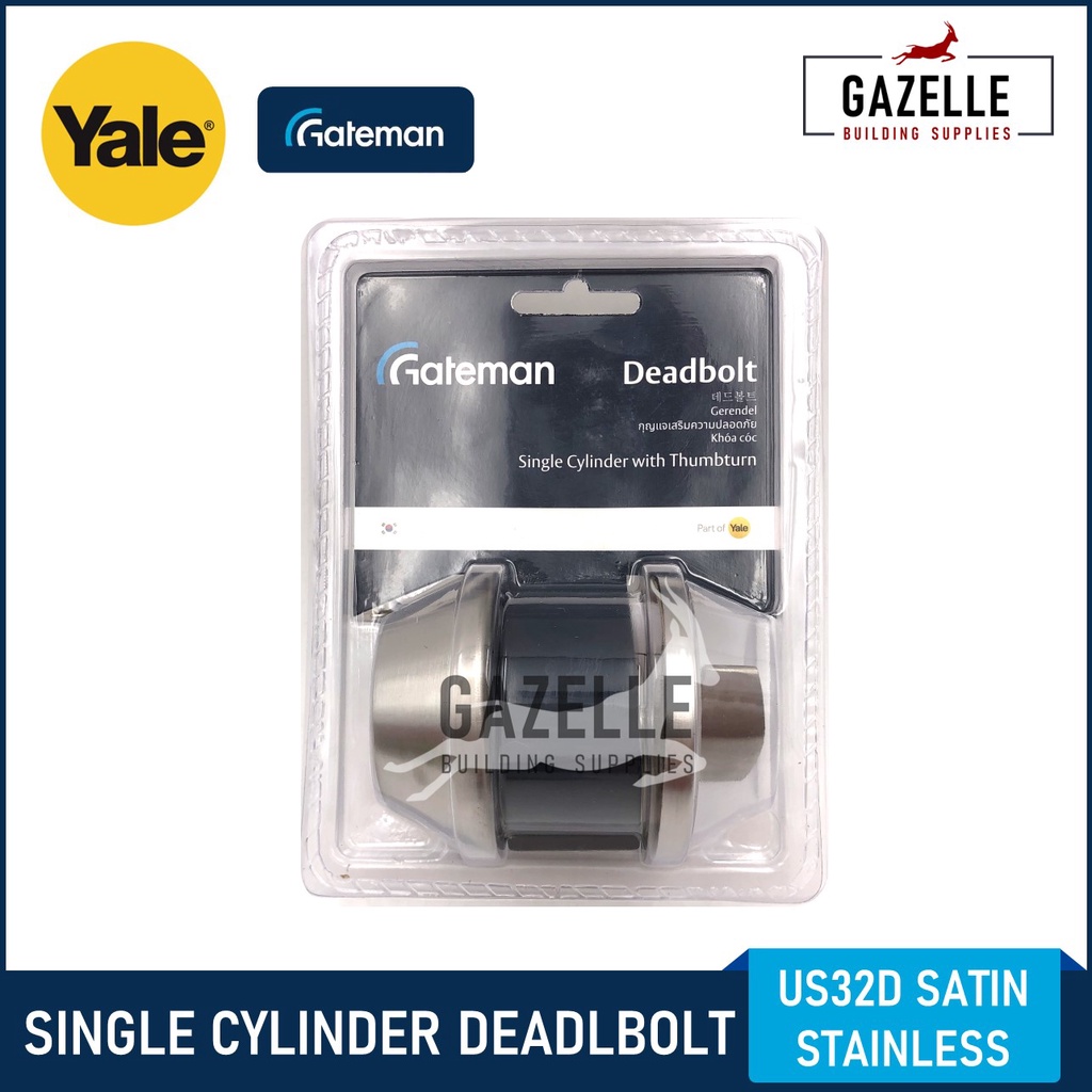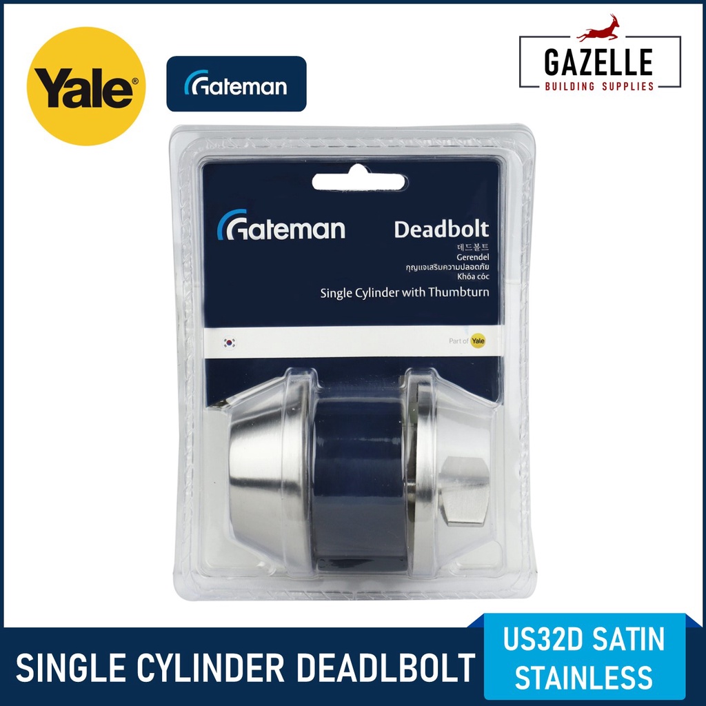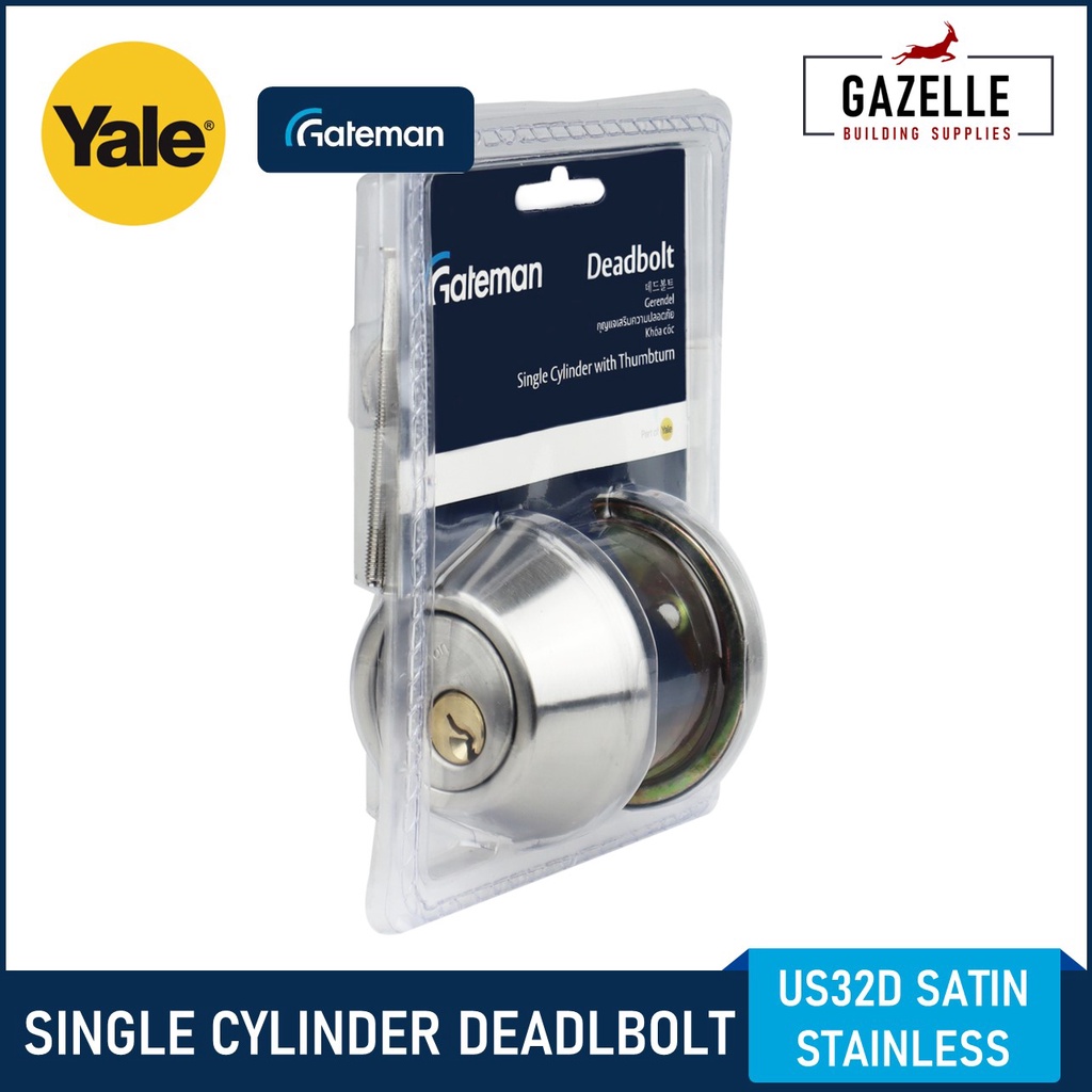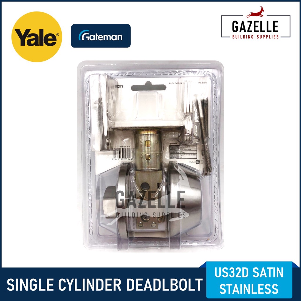 Yale Gateman Entrance Door Lock Single Cylinder Deadbolt - US32D Stainless Steel