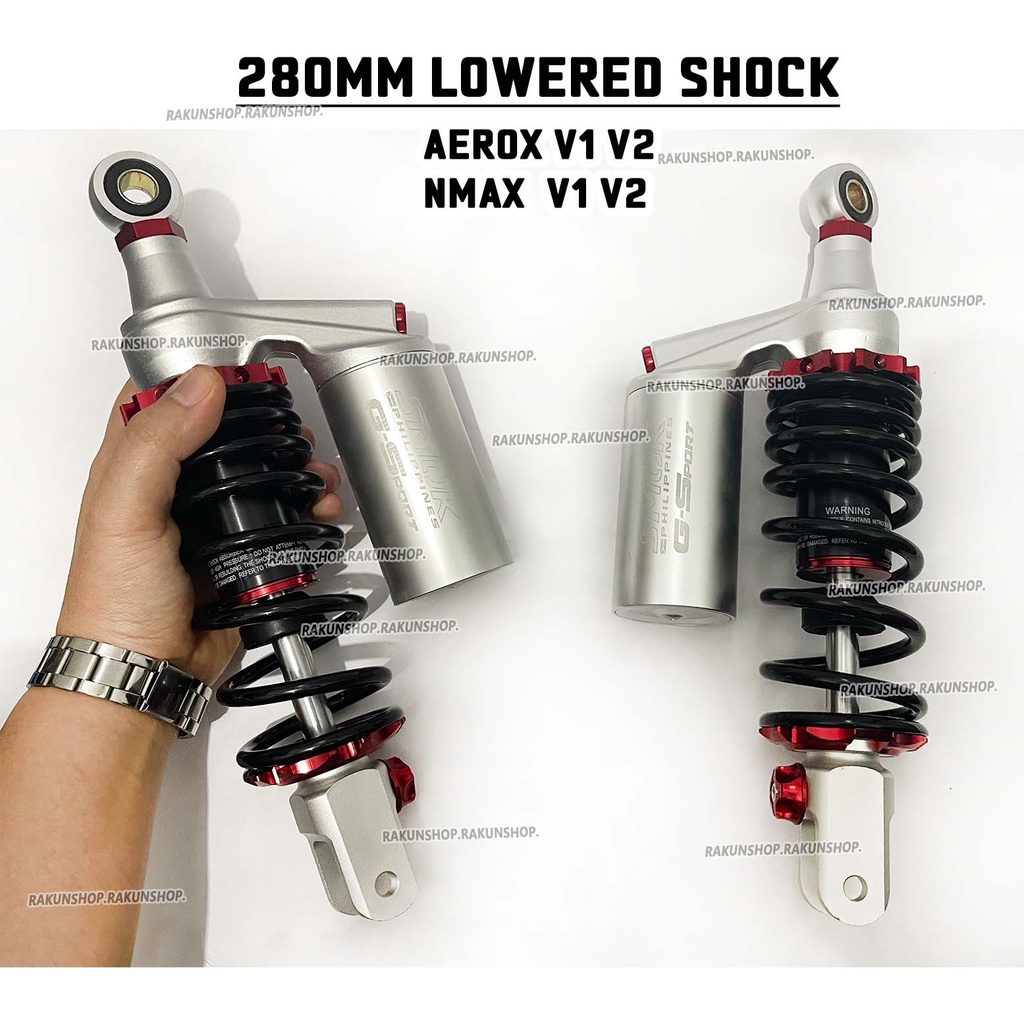 Yamaha Aerox V1 V2 and NMAX V1 V2 Rear shock Silver 2pcs with Lowered Baso style 280mm SMOKbrand