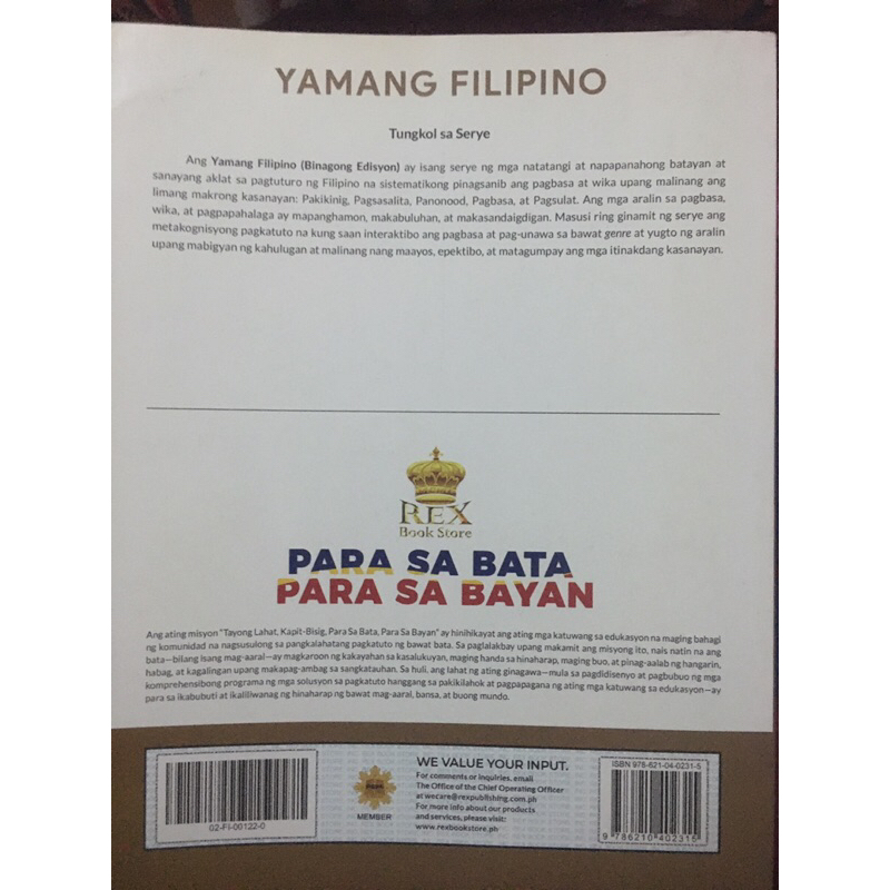 Yamang Filipino Grade 6 REX BOOKSTORE 2020 Edition
