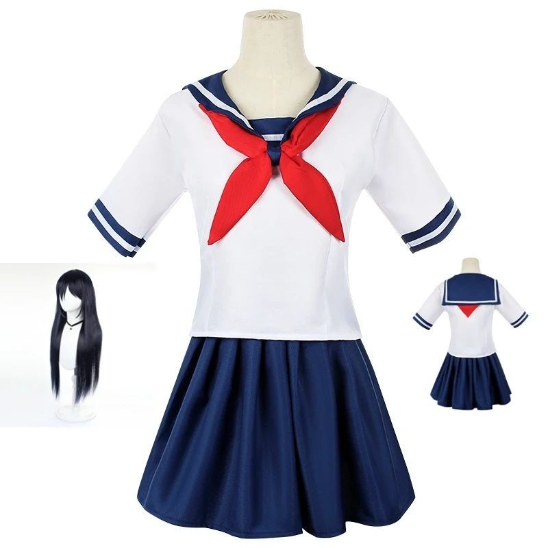 Yandere Simulator Ayano Aishi Cosplay Costumes Game Anime Girls JK Uniform Outfit Sailor T-shirt with Skirt Black Wigs