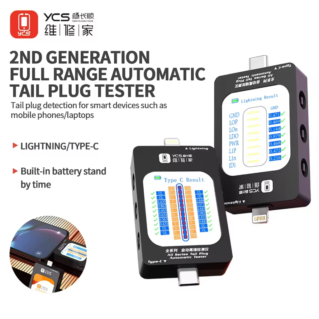 YCS All Serie Tail Plug Comprehensive Analysis Tester Current Voltage Detection LIGHTNING/TYPE-C Mobile Phones Charging Tools