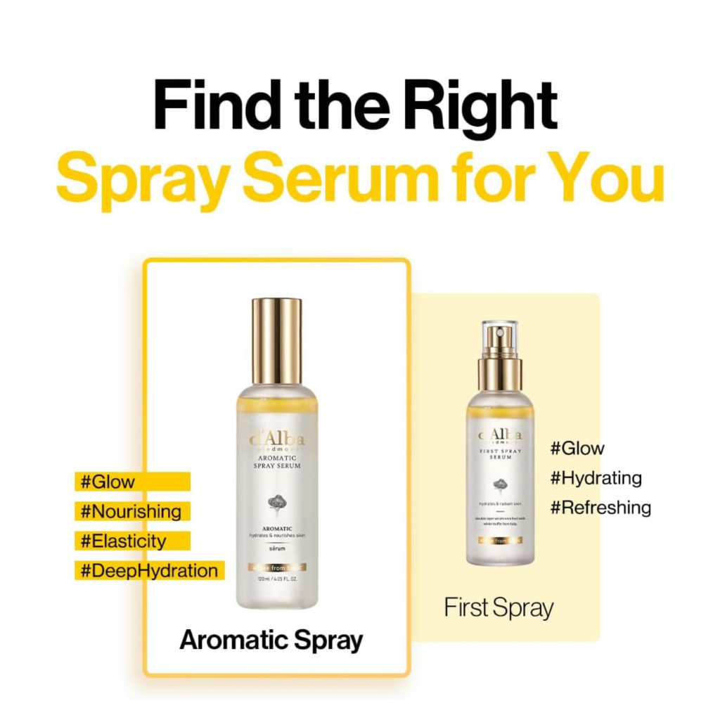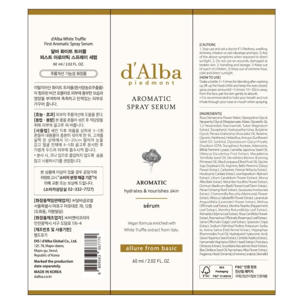 d'alba Piedmont Italian White Truffle First Aromatic Spray Serum, Fragrant VEGAN Glowy Antioxidant Face Mist, Deep Hydration Skin Firmness, Korean Skin Care (2.02 fl.oz)