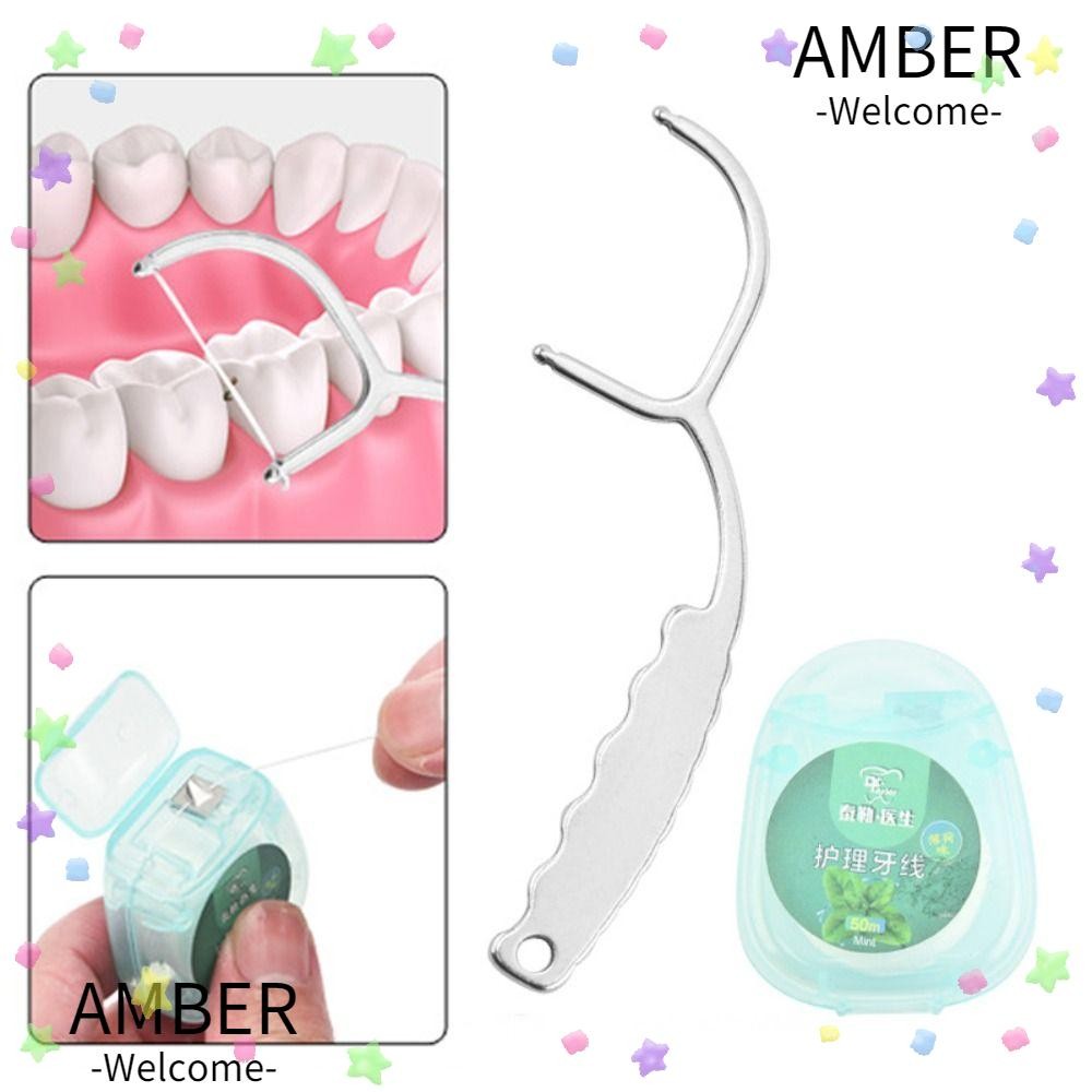 AMBER Handle Tooth Flossing, Portable Reusable Stainless Steel Toothpicks, Oral Cleaning Tools Home Floss Floss