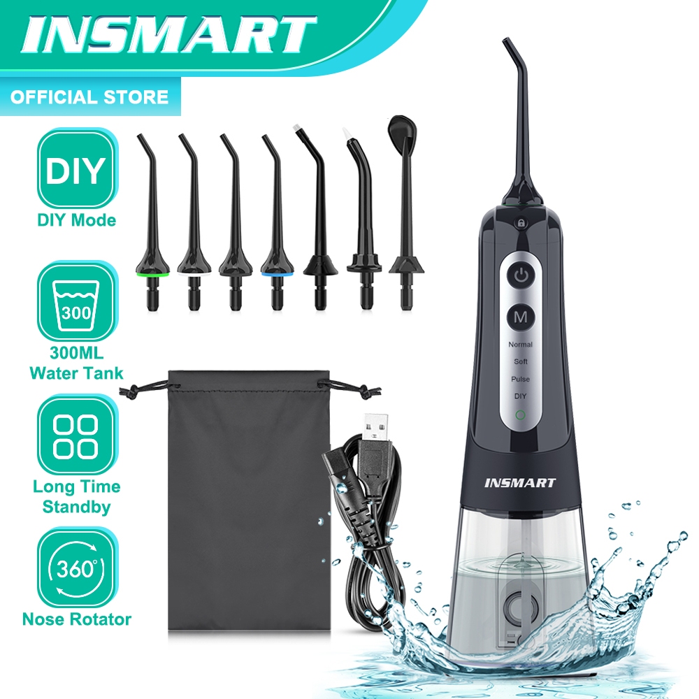 INSMART 4 Mode Water Flosser Portable Oral Irrigator 7 Nozzles Teeth Cleaning Tools Electric Dental Scaler 300ML