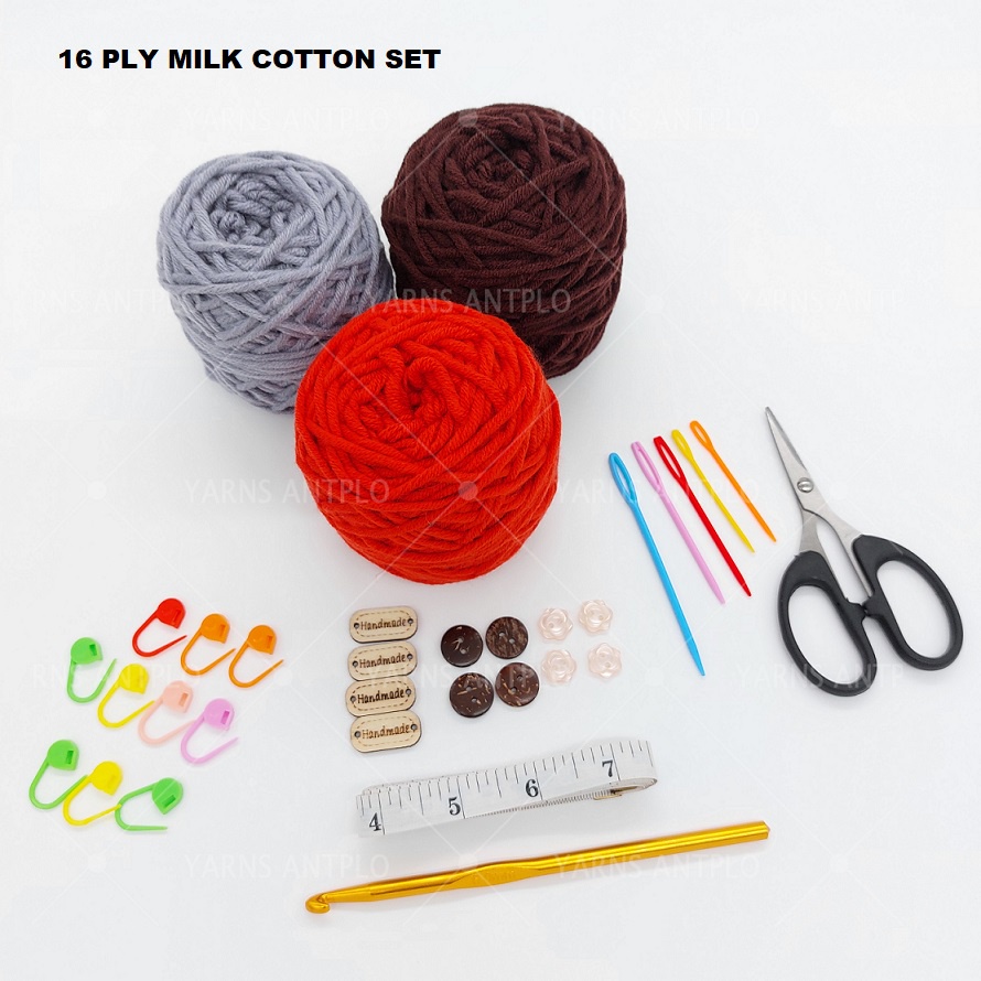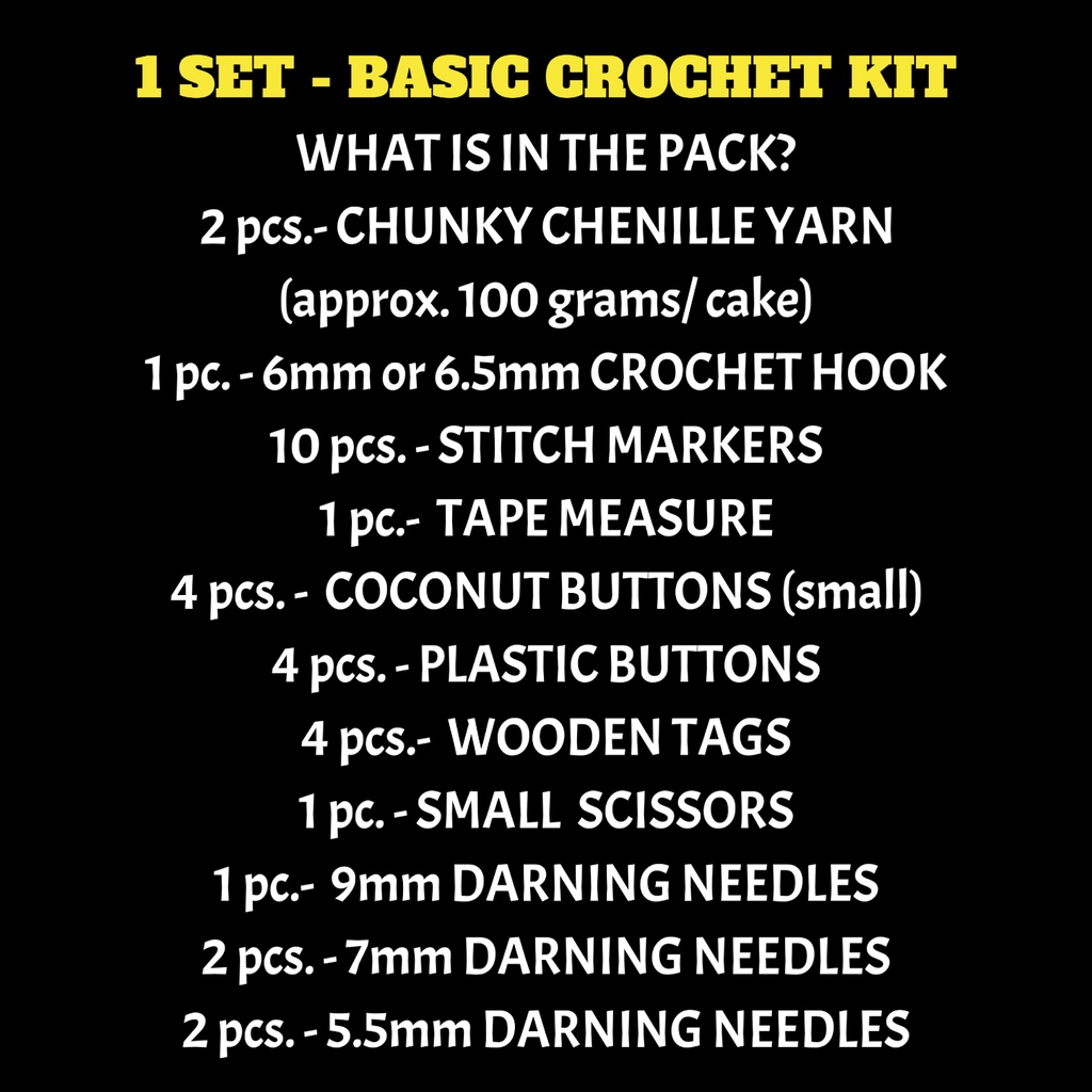 Yarns Art: 1 SET - BASIC CROCHET KIT - CHUNKY CHENILLE YARN/ 16PLY MILK COTTON YARN