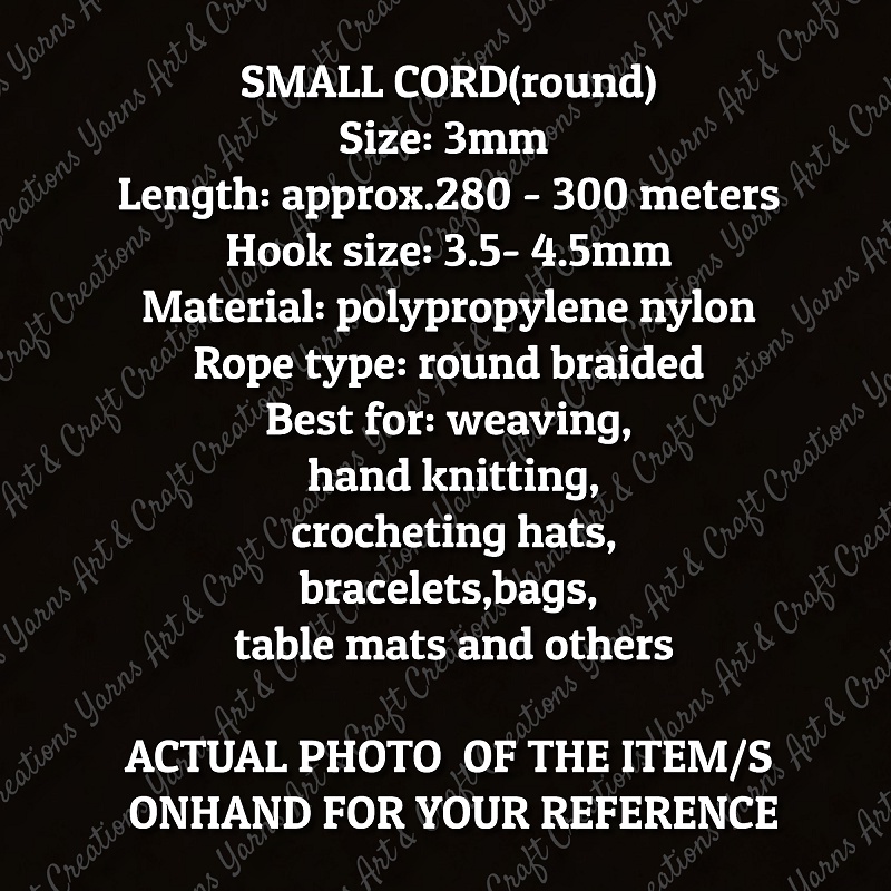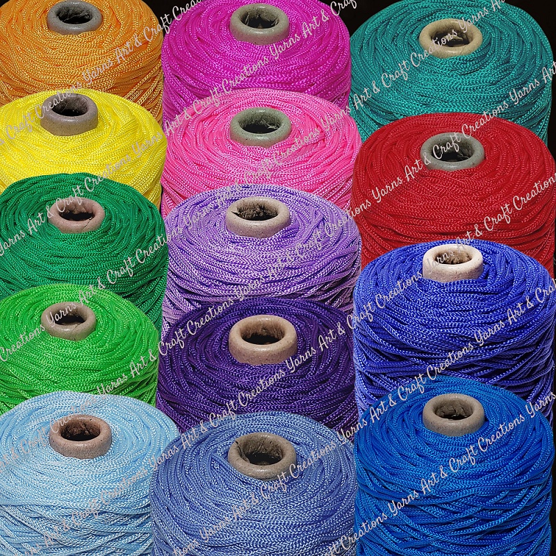 Yarns Art: 3MM SMALL CORDS/ POLYPROPYLENE NYLON (ROUND BRAIDED) ROPE/ CORD/ STRING - 500G PER CONE
