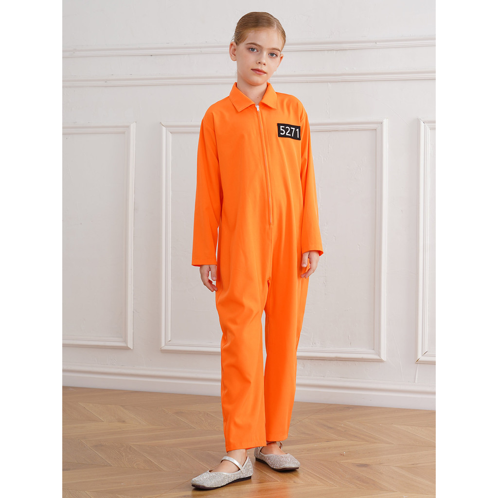 Yartina Kids Prisoner Costume One Piece Long Sleeve Prisoner Jumpsuit Jailbird Inmate Prison Uniform Themed Party Cosplay Costume