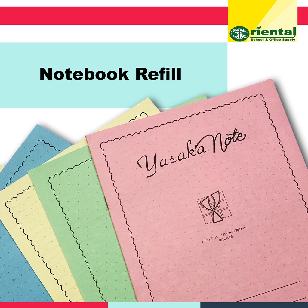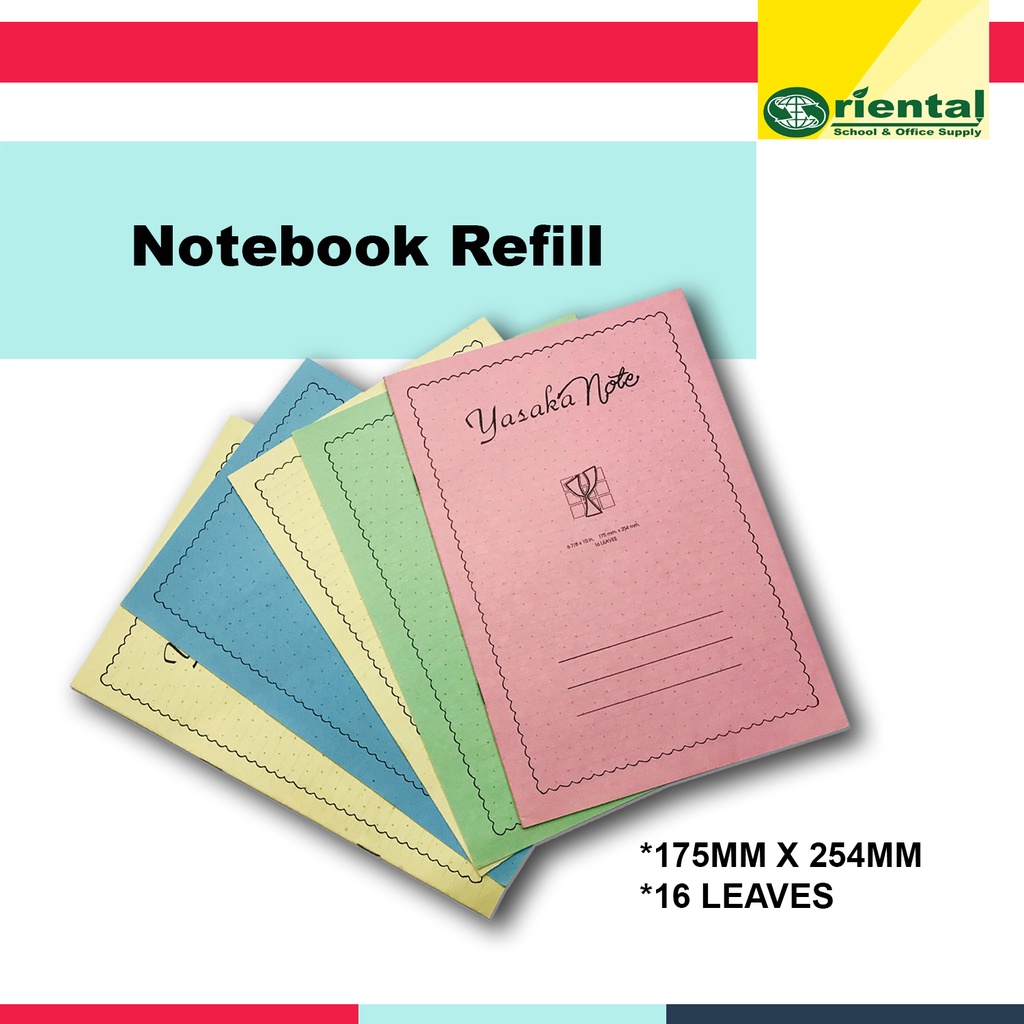 Yasaka Notebook Refill - Refiller for Binder - 6 7/8 x 10 inches Size - 16 leaves - Sold per Notes