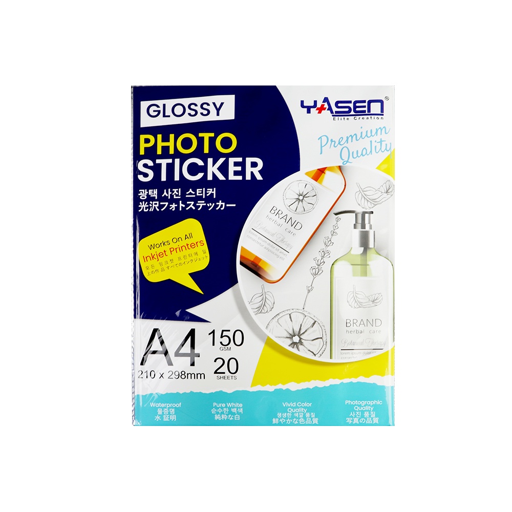 Yasen A4 Size Photo Sticker Paper Glossy (90gsm /135gsm /150gsm) Label Photo Sticker 20Sheets