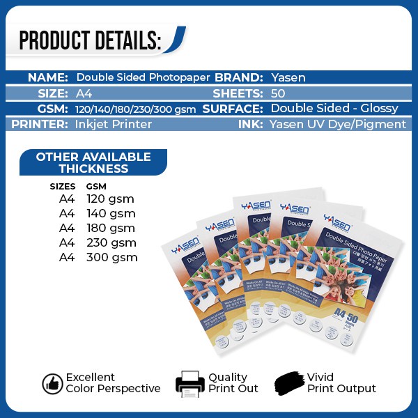 Yasen Double Sided White Photo paper Printable Back to Back High Glossy Paper A4 Size