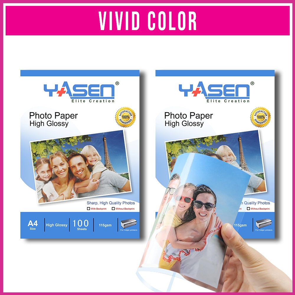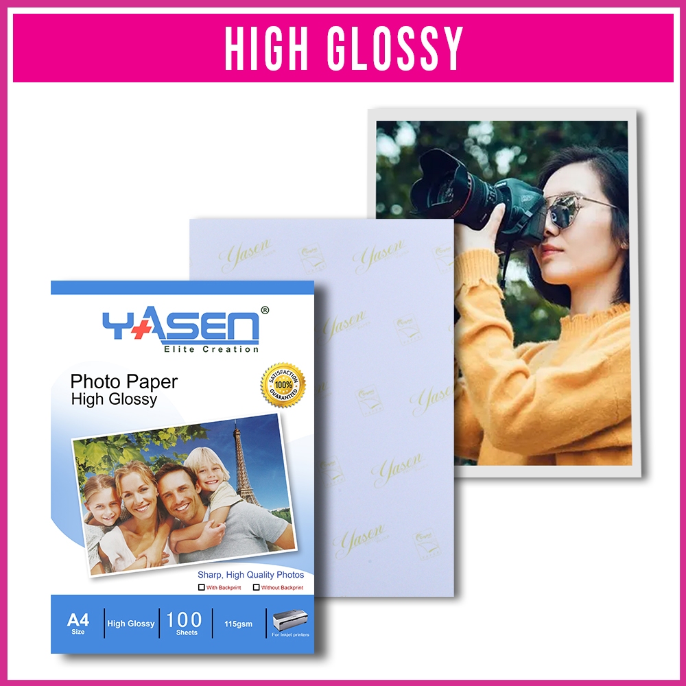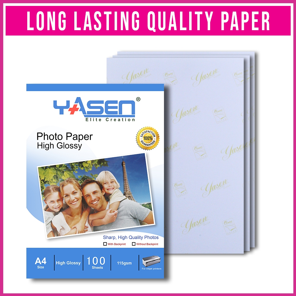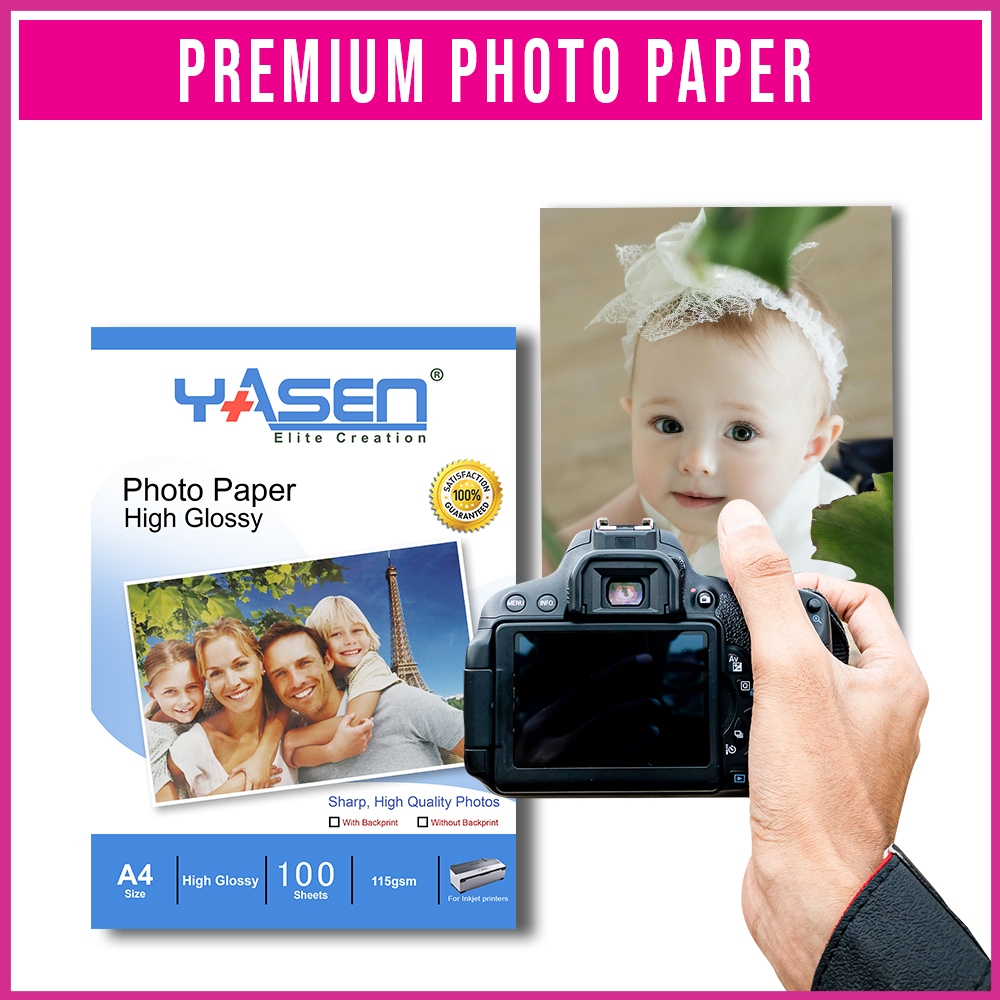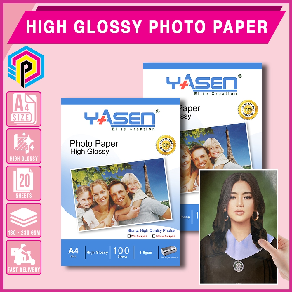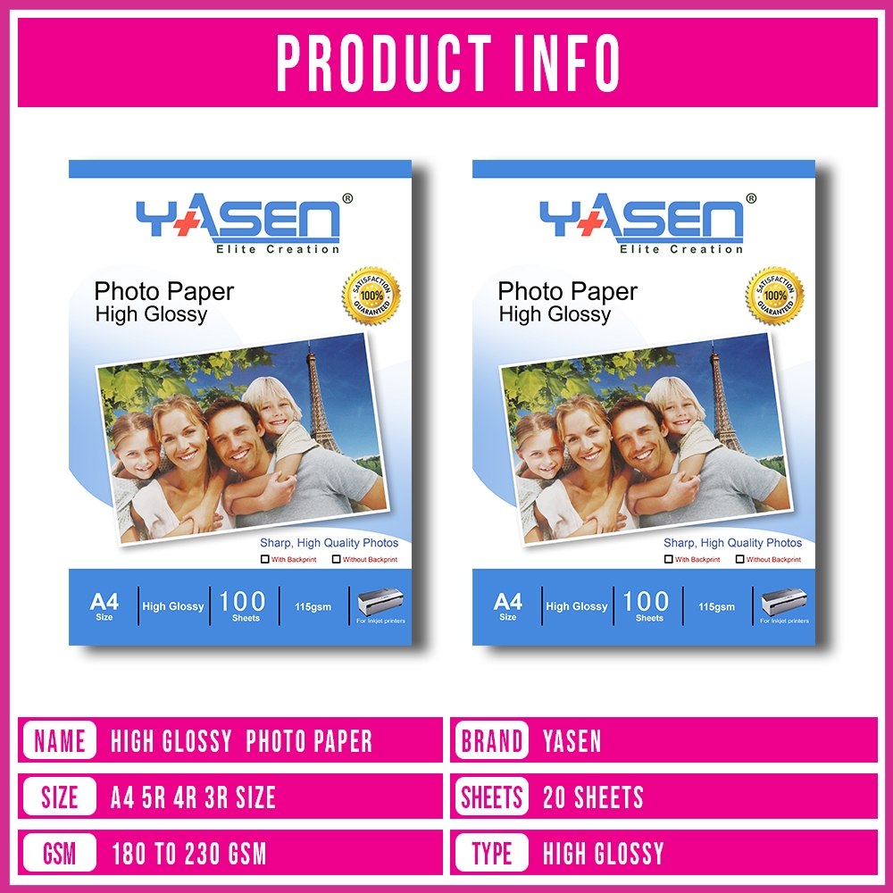 Yasen Glossy Photo Paper 180gsm - 230gsm A4 | 5R | 4R | 3R Size with Back Print 20 Sheets