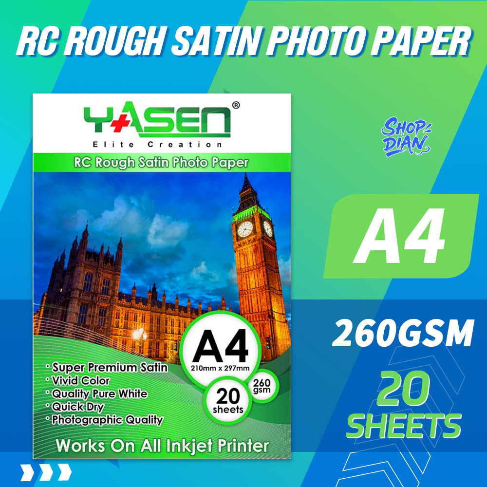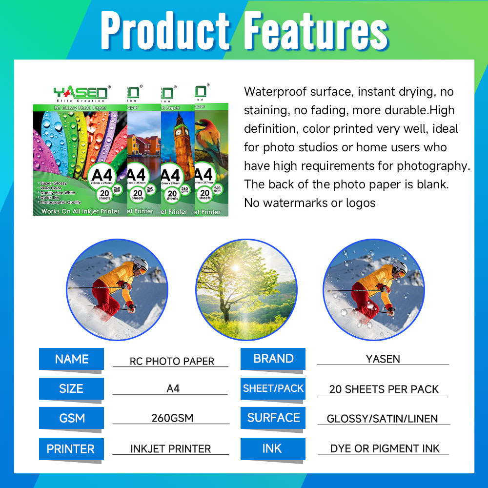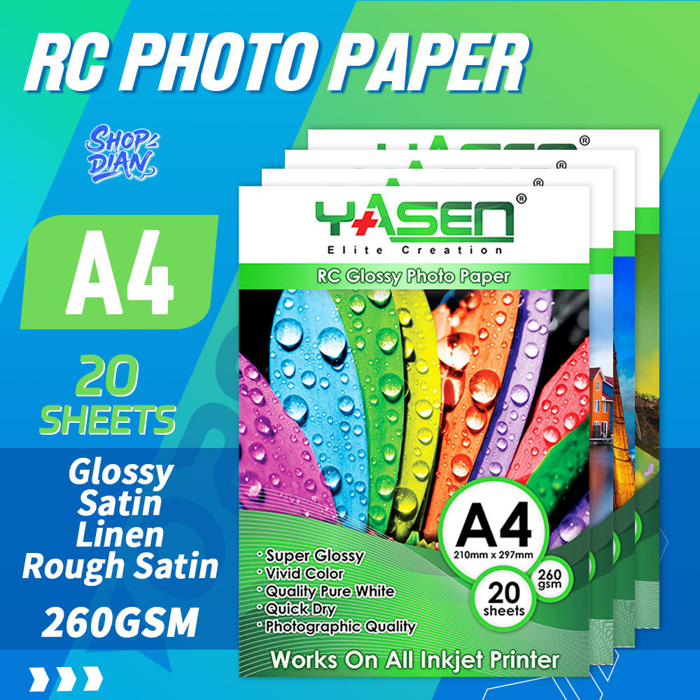 Yasen RC Satin/Glossy/Linen/Rough Satin Photo paper 260Gsm A4 Size Resin Coated High Quality