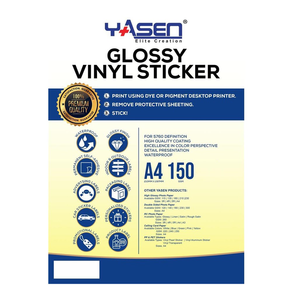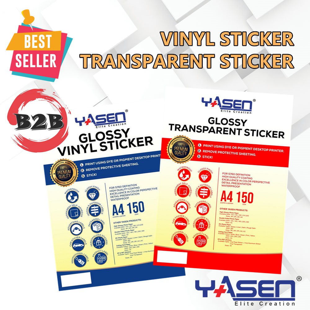 Yasen Transparent Vinyl White Vinly Laber Sticker Paper A4 150GSM Glossy