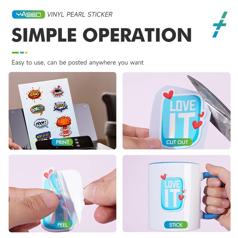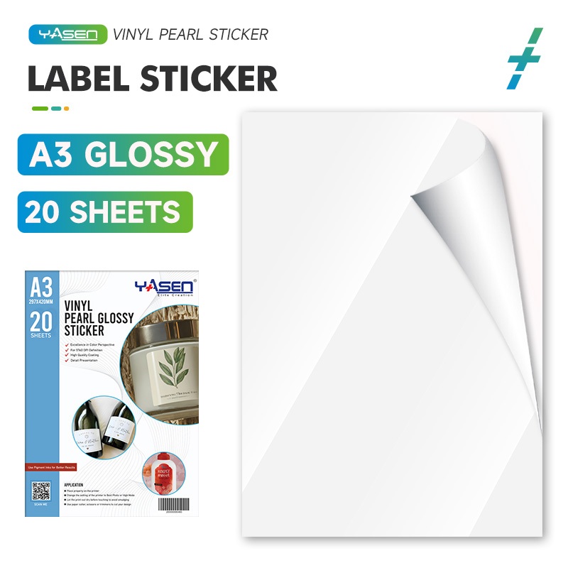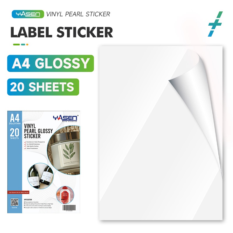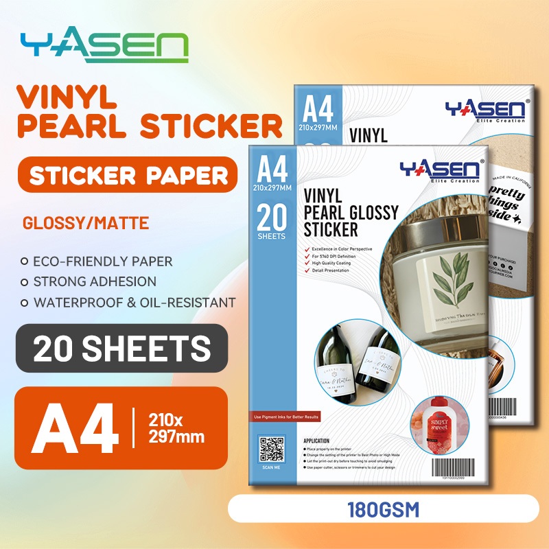 Yasen Waterproof A4 Vinyl Stickers Glossy/Matte Finish for Inkjet Printers/20 Self-Adhesive Sheets