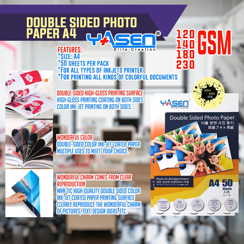 Yasen inkjet high glossy photo paper double sided A4 120gsm 140gsm 180gsm 230gsm