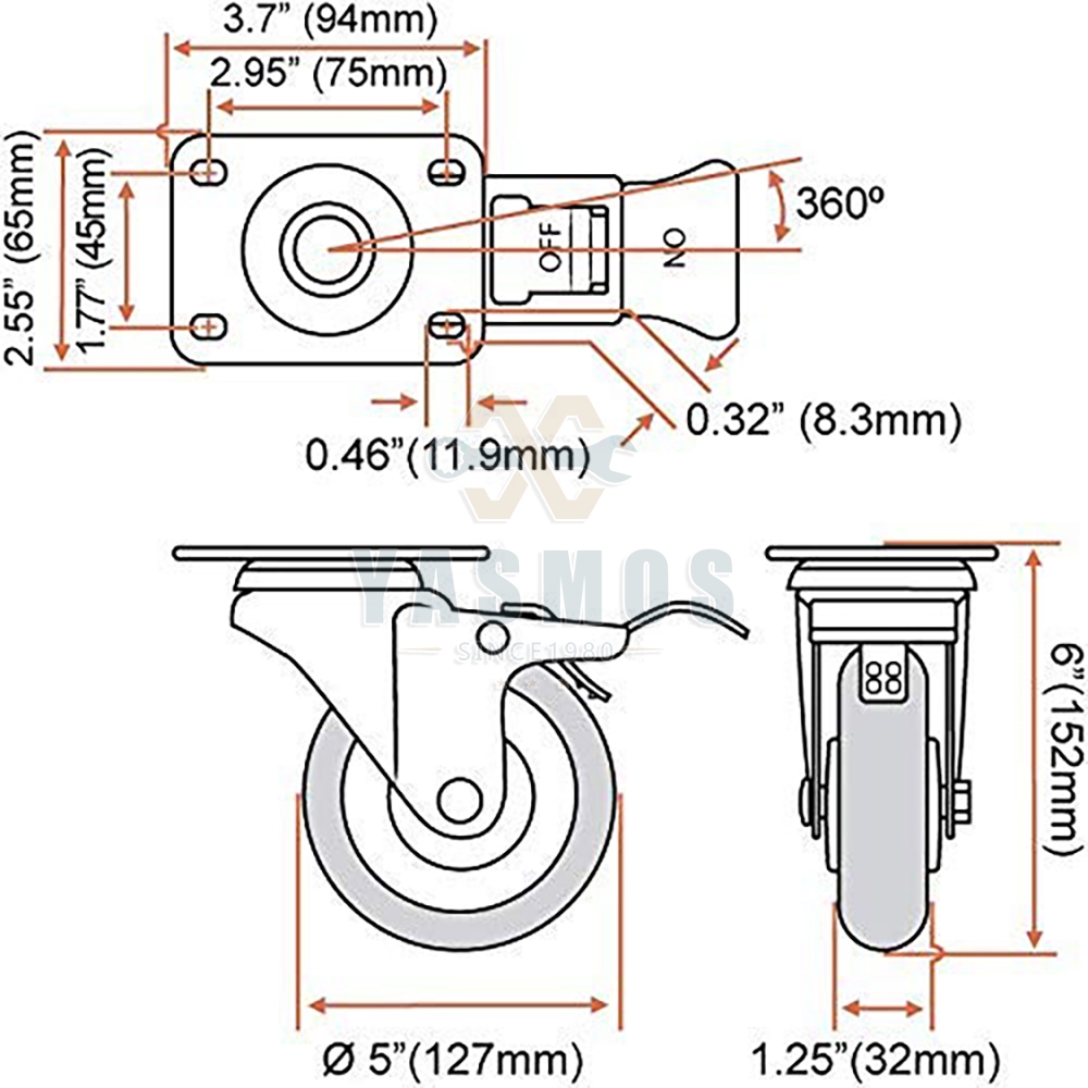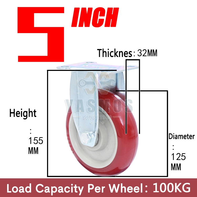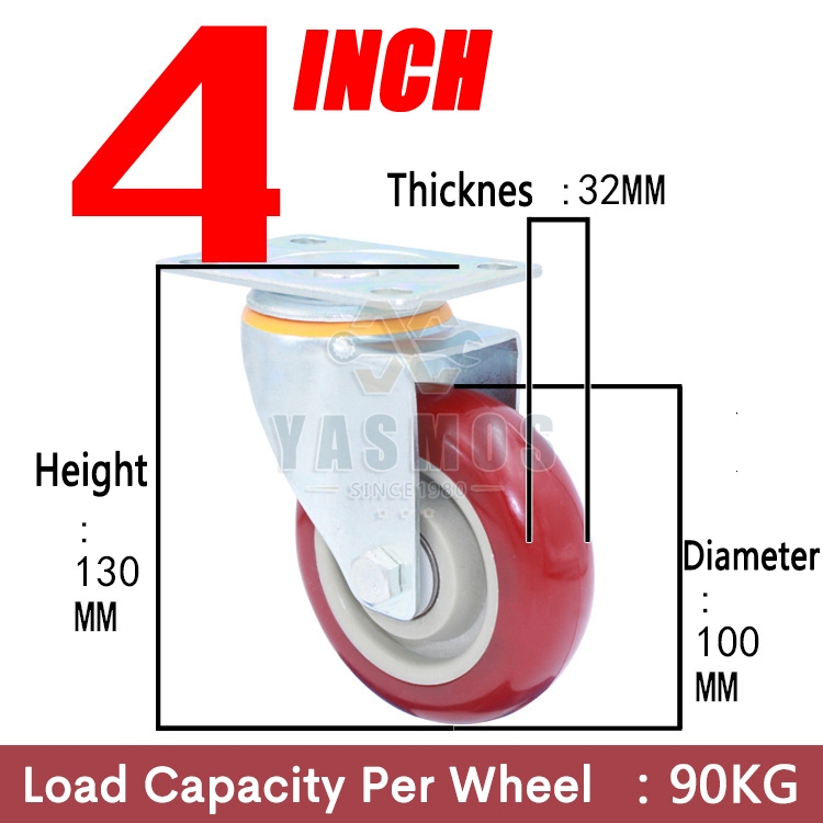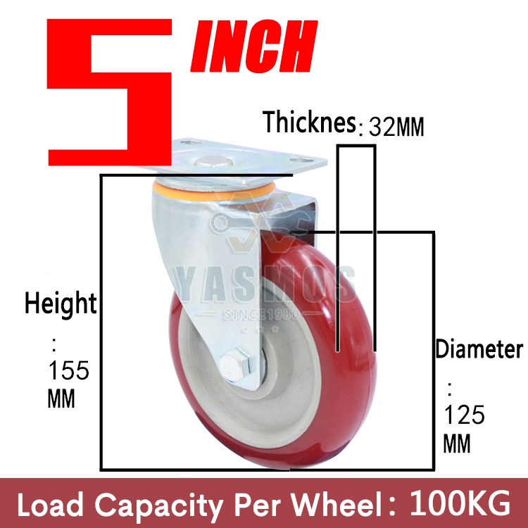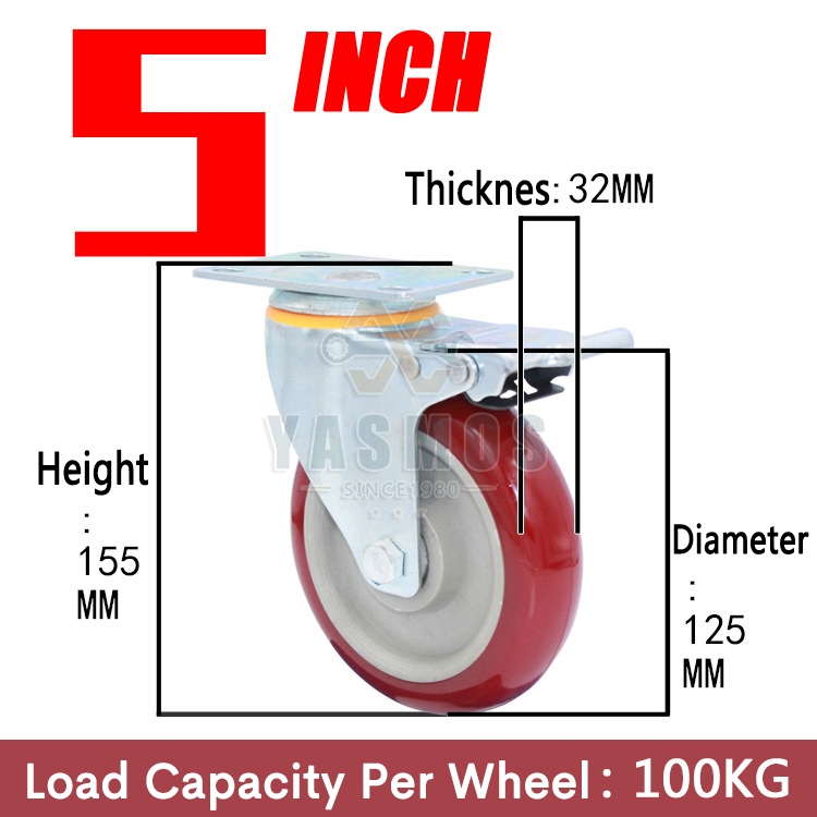 Yasmos PU Caster Wheel Heavy Duty Wheels With Brakes Universal Wheel Tire Cart Trolley wheel