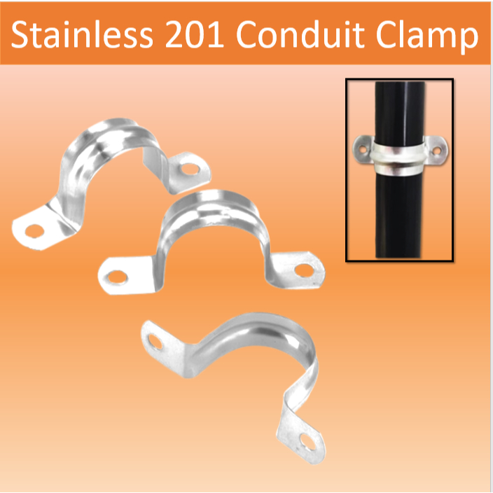 Ycaruz 8mm-150mm Stainless 201 Conduit Clamp Holes Rigid Pipe Strap Stainless Steel U Bracket Tube C