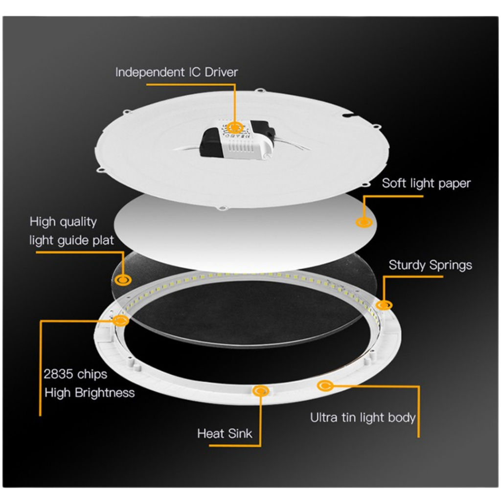 Yeelite LED Panel Light 3W 6W 12W 18W Slim Recessed Panel Light Daylight Round & Square