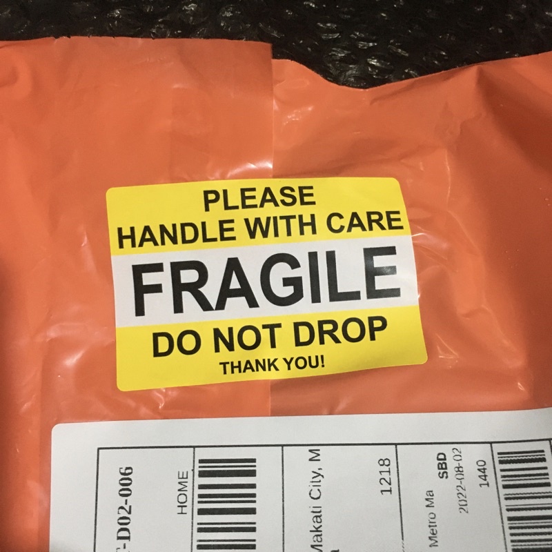 Yellow FRAGILE STICKER Label 500pcs/Roll packaging need tape