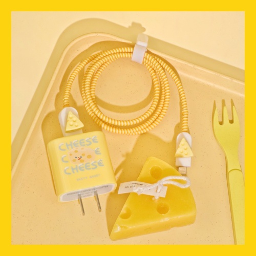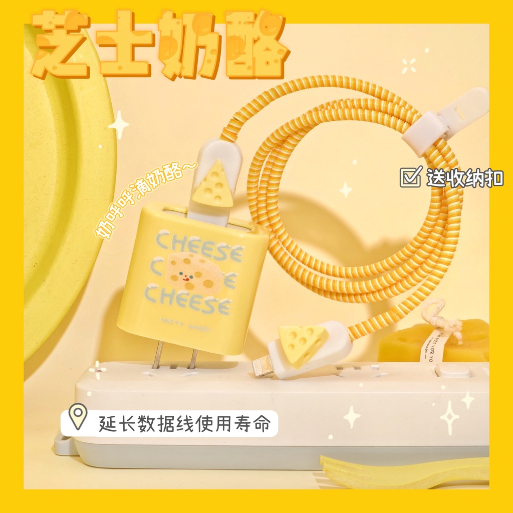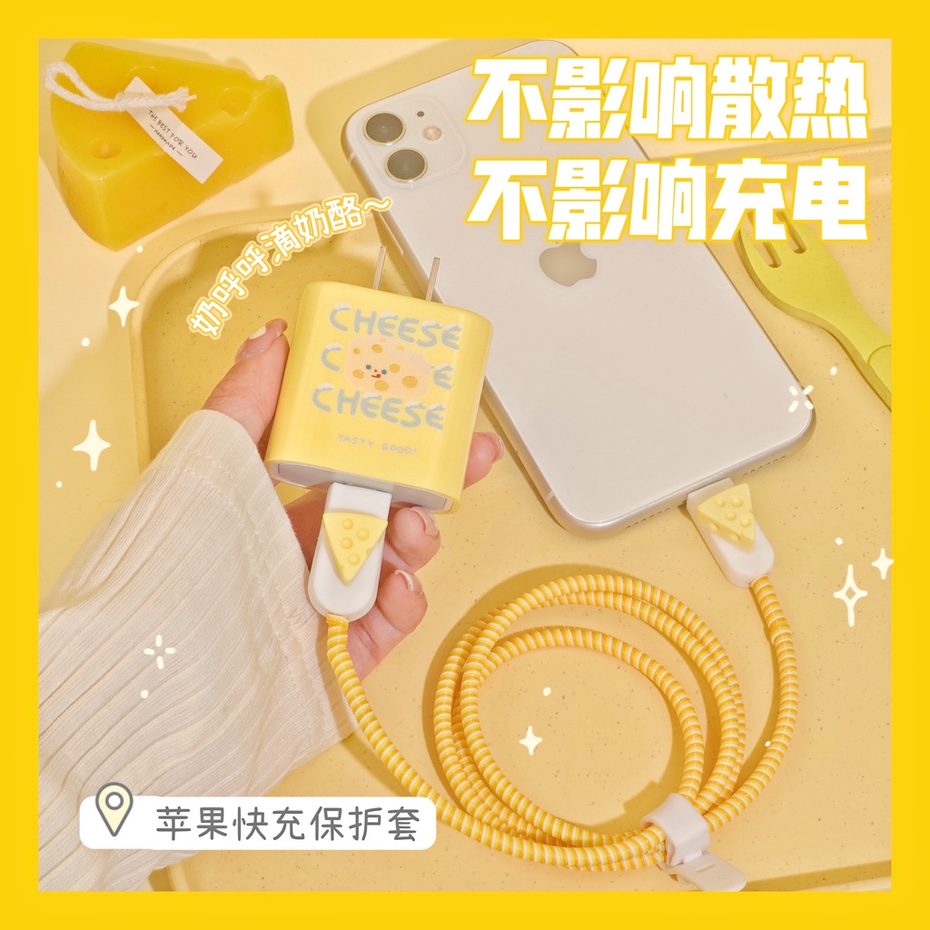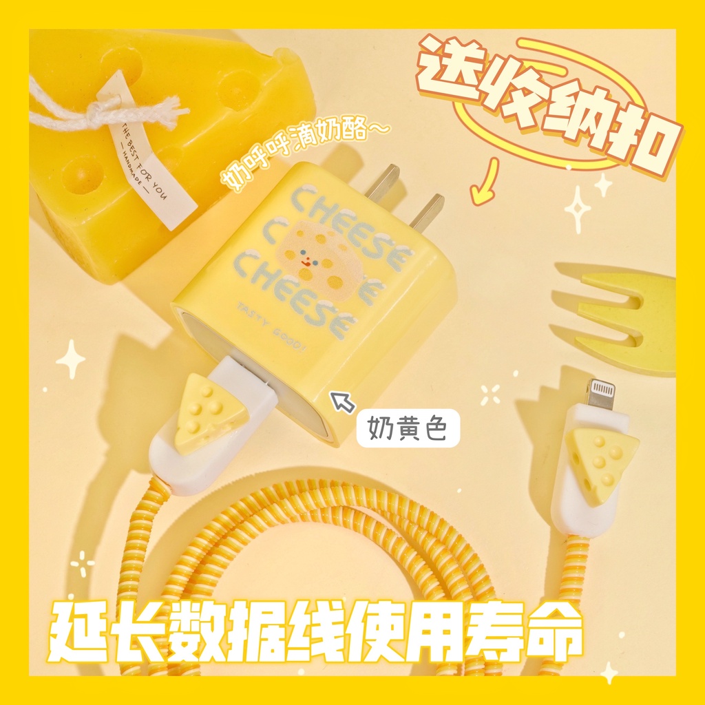 Yellow cheese charger protective case for Apple 14 Promax cable winder for iPad for iPhone 11 Promax/13/12 fast charge 20W charger head soft