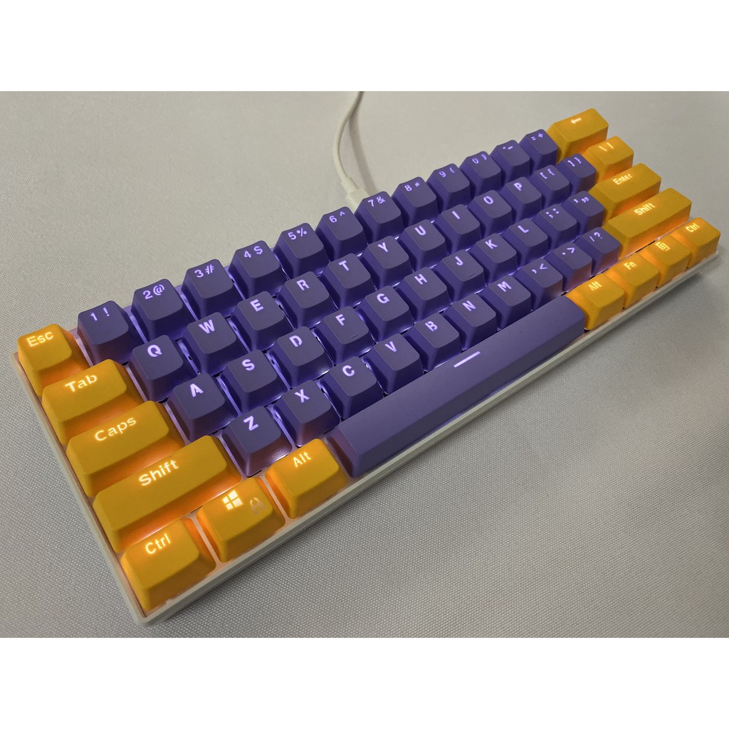Yellow purple Keycap,61 Key PBT keycaps Specials event Keycaps, backlit two-color mechanical keyboard keycaps GH60 / RK61 / ALT61 / Annie / GK61 keyboard poker key game keycaps Office and home game machine keyboard cap(keycaps only sold)