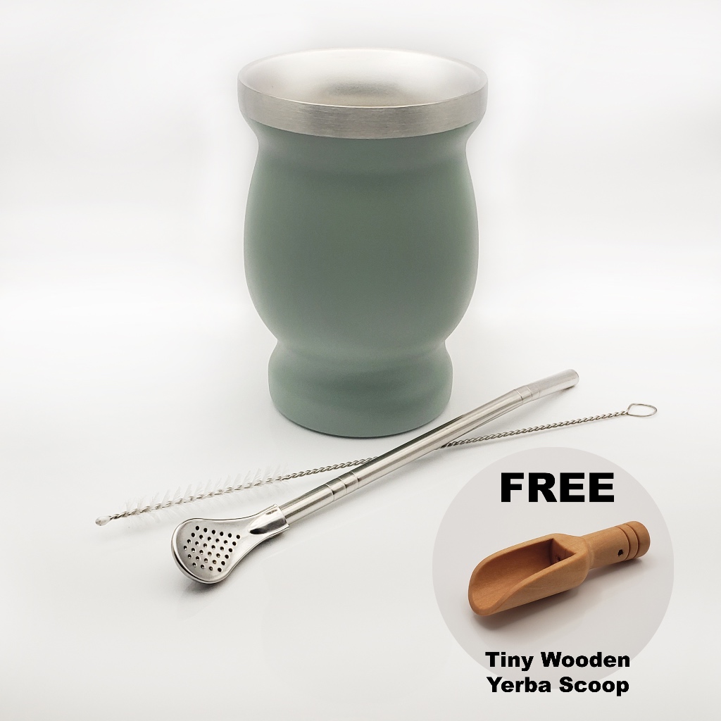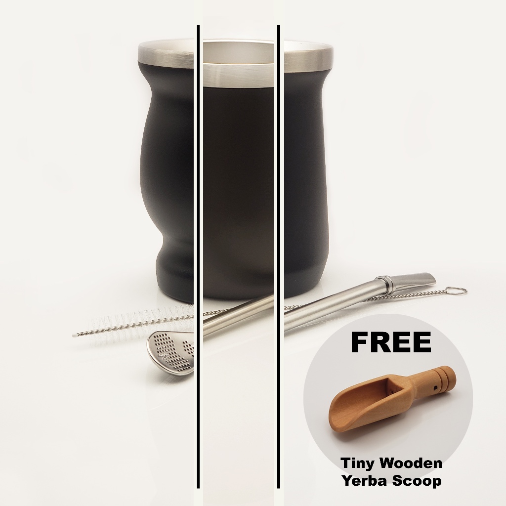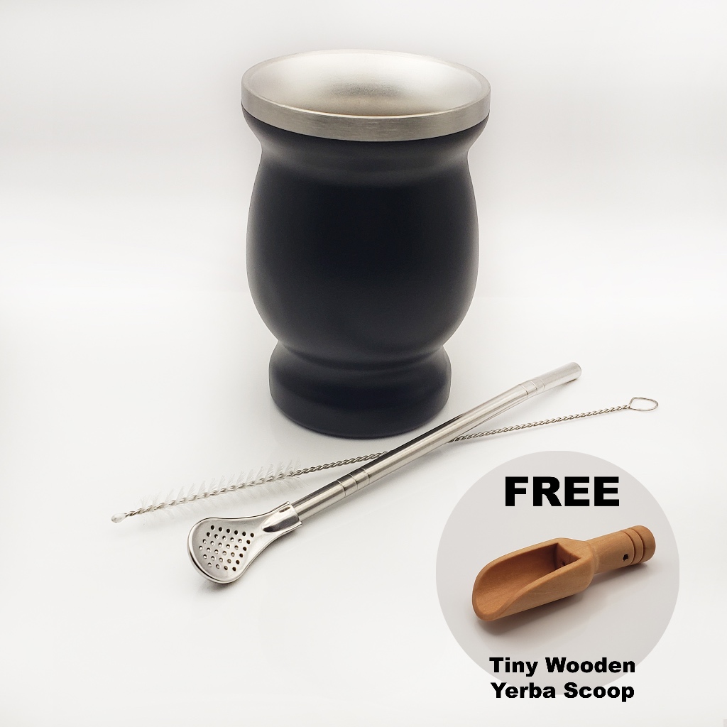 Yerba Mate Gourd & Bombilla Starter Kit ( Stainless Steel Mug & Straw Starter Set )