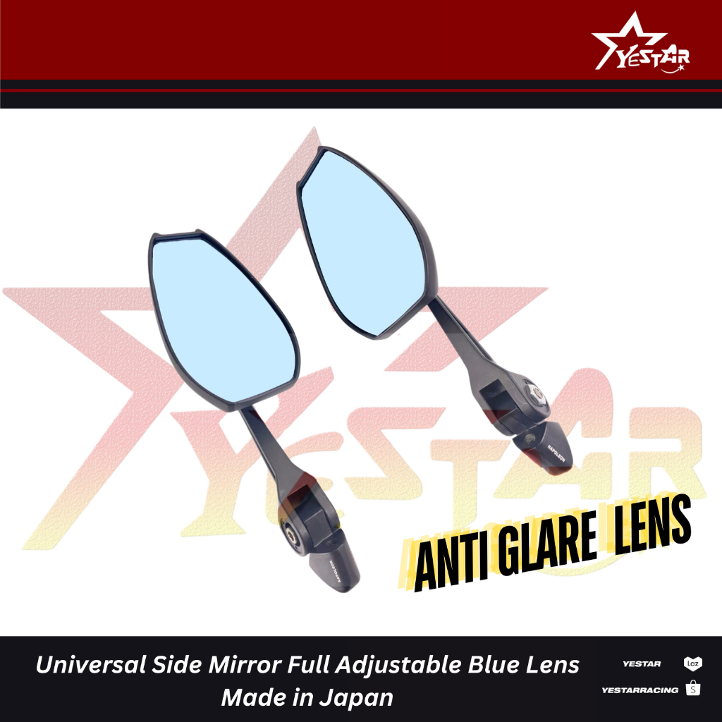 Yestar Racing Universal Side Mirror Full Adjustable White Lens Made in Japan