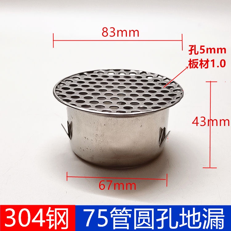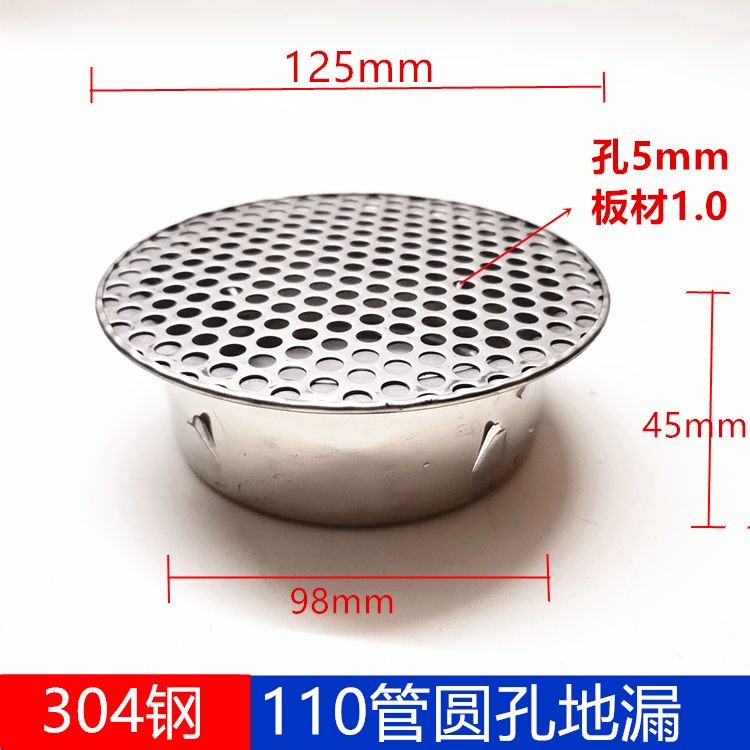 Yixi 50PVC Pipe Cap Stainless Steel Floor Drain Cover 110 Drainage Filter Mesh 200 Days Groove Anti-Blocking Garden Round Hole Water Removal Bucket Keyou