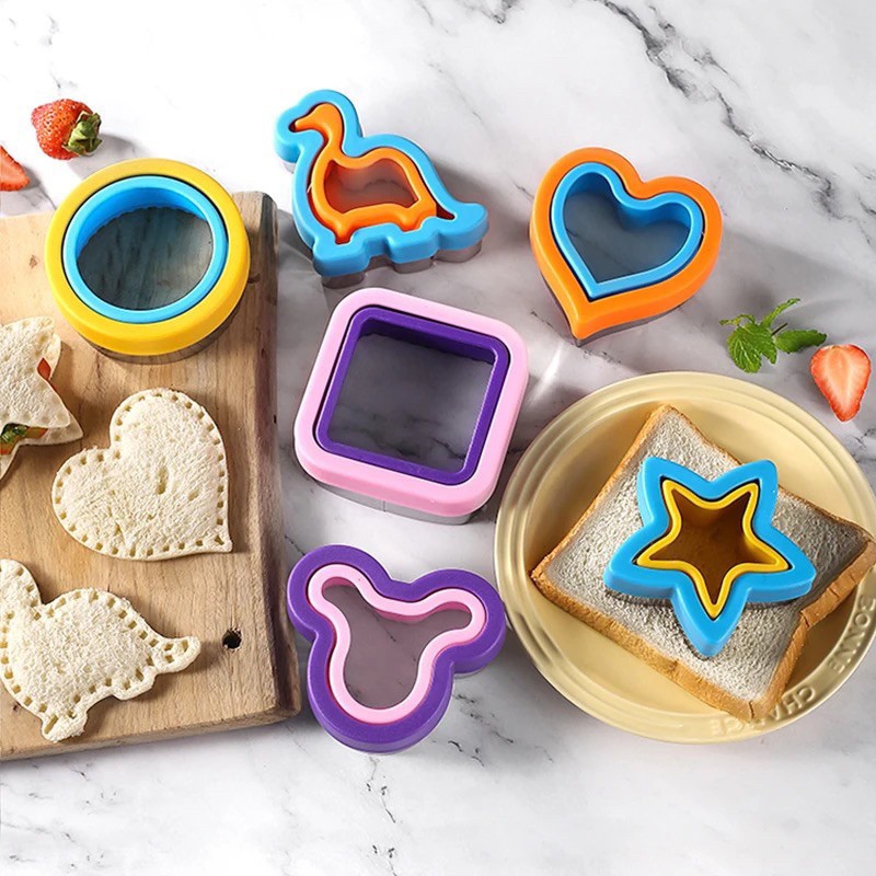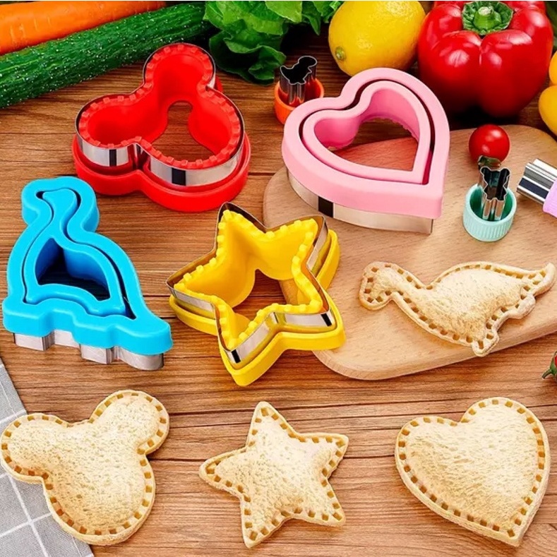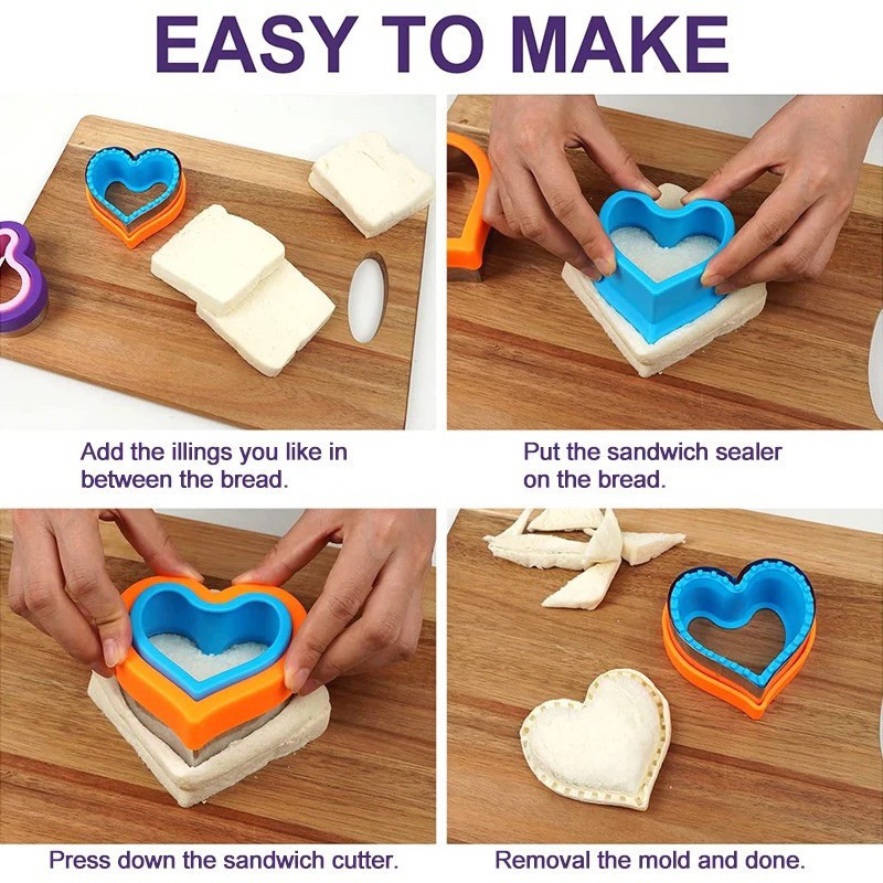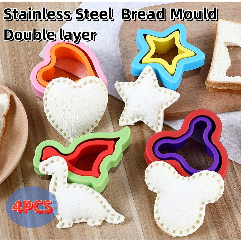 Yo-Fun 4pcs/set Stainless Steel Sandwich Cutter Bread Pocket Mold Metal Cookie Cutters Mold 2-layer
