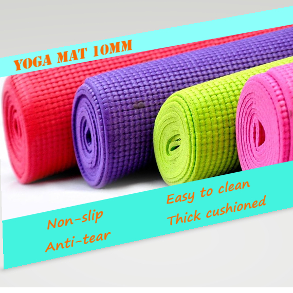 Yoga Exercise Gym Mat Non Slip Anti Tear 10mm Thick Cushioned with Carrying Strap