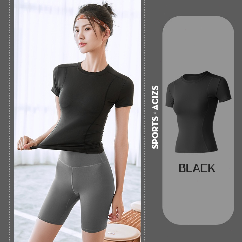 Basic Yoga Shirt Women Sports Wear Stretchable Quick Dry Cooling Soft Fitness Gym Running Workout