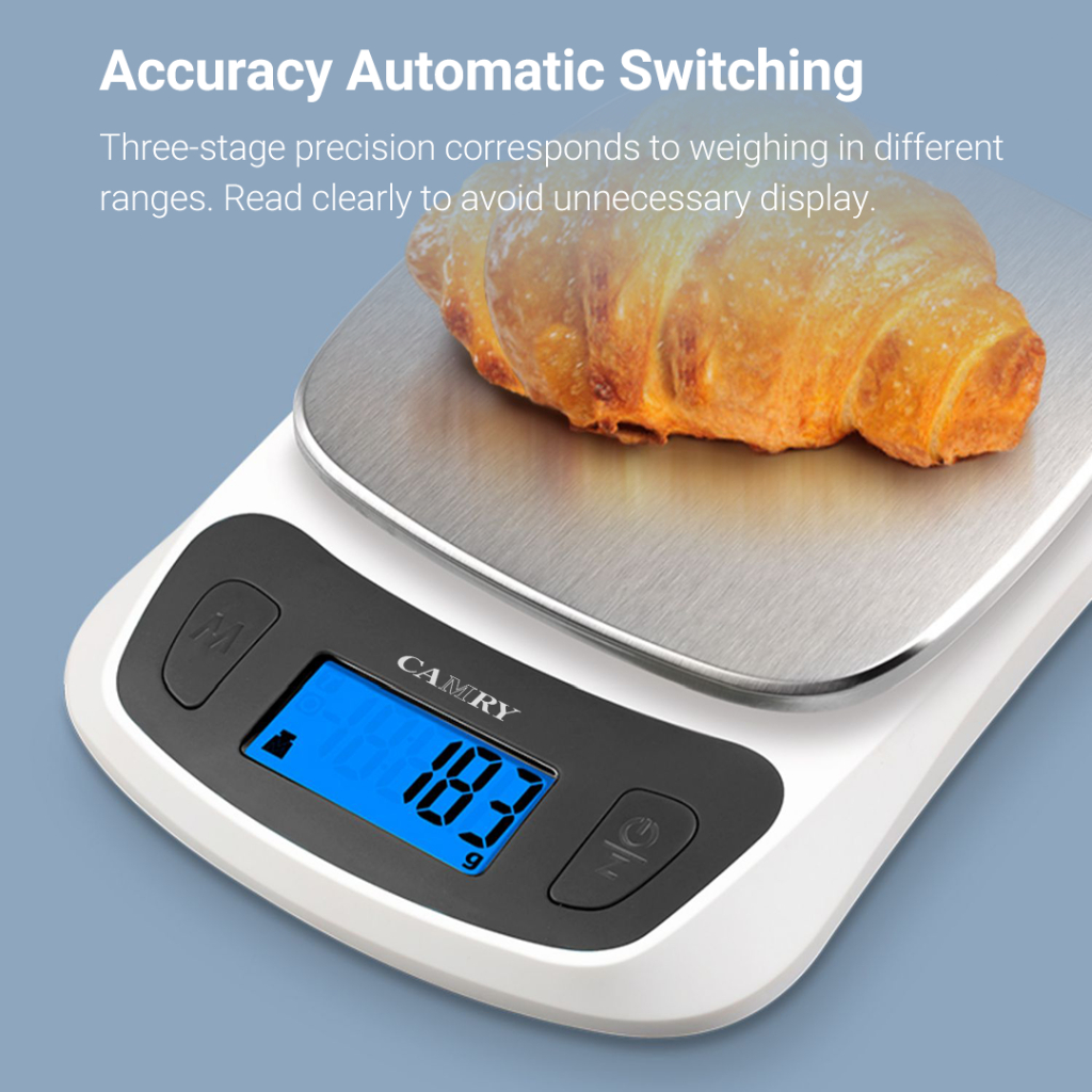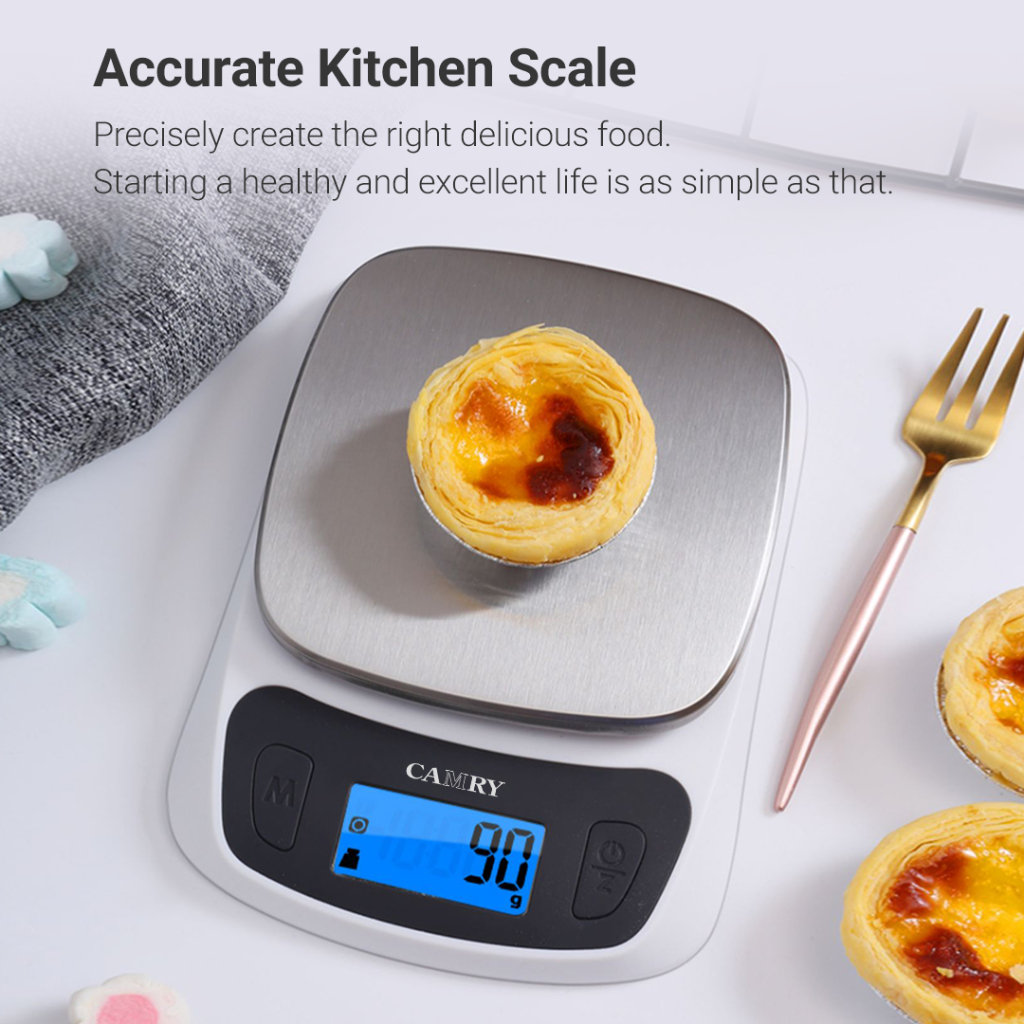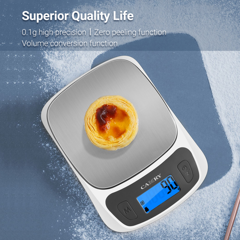 CAMRY Kitchen Scale Digital Food Weight 5kg Ultra Slim Scale for Baking Cooking in Grams and Ounces Tare & Backlight LCD Display Capacity