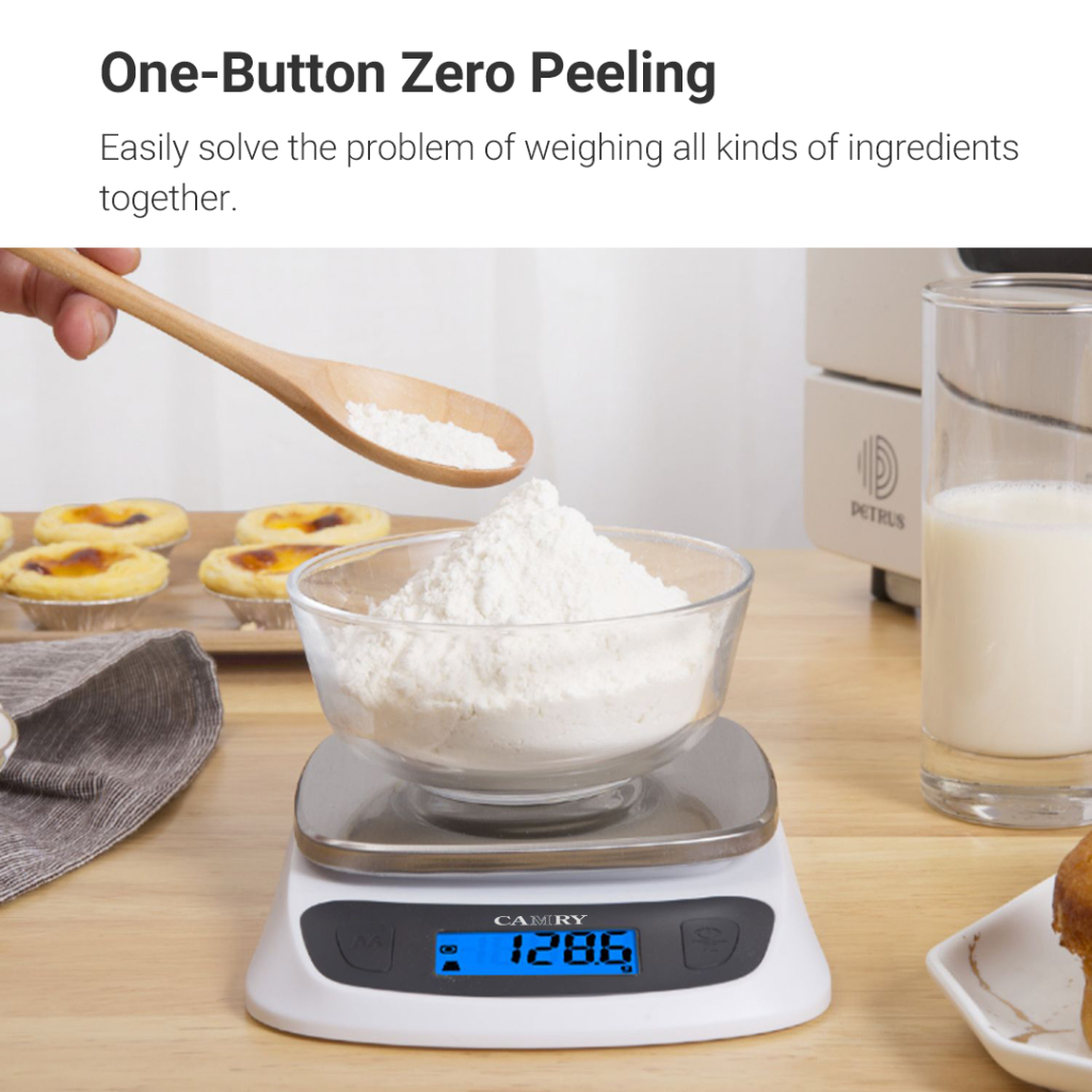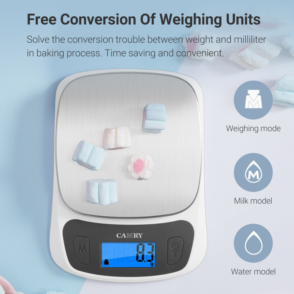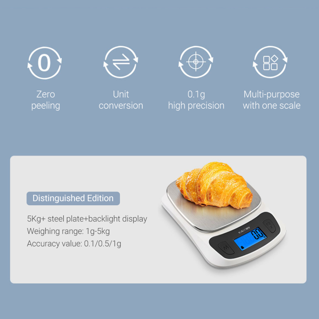 CAMRY Kitchen Scale Digital Food Weight 5kg Ultra Slim Scale for Baking Cooking in Grams and Ounces Tare & Backlight LCD Display Capacity
