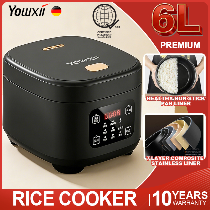 Yowxii LCD Stainless Rice Cooker 6L Large Capacity Standard Multifunctional Electric Cooker Nonstick