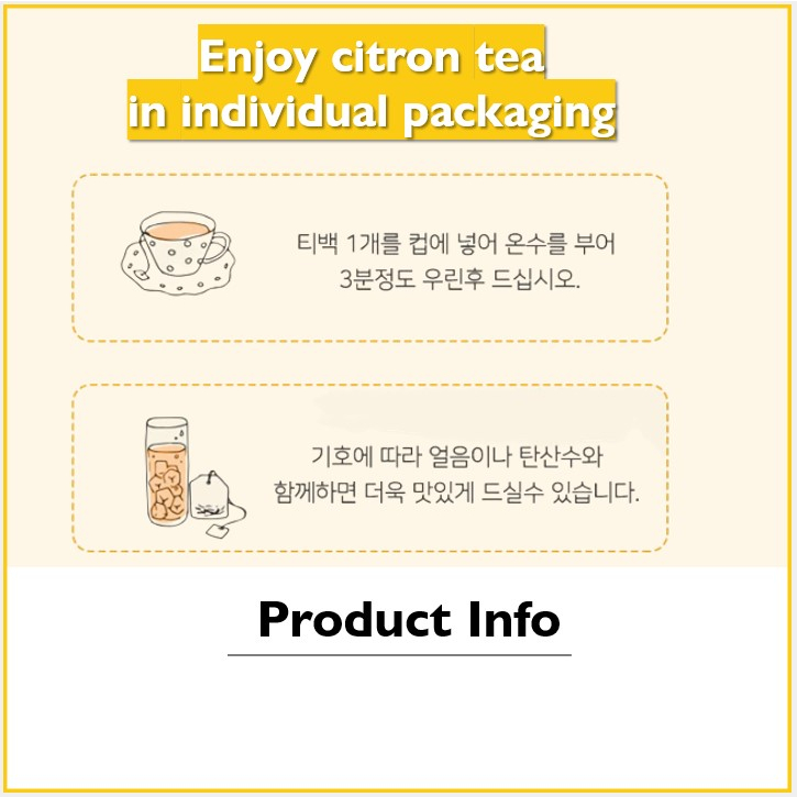 Yuja Citron Tea Bag Bags Honey Cha Korea Favorite Famous Flavors Korean Flavor No Sugar diet low calorie friendly drink juice Slimming