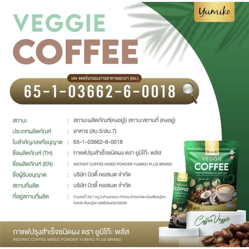 Yumiko Veggie Coffee Vegetable Fiber Chlorophyll Nourish Joints Bones The Eyes The Real Man.