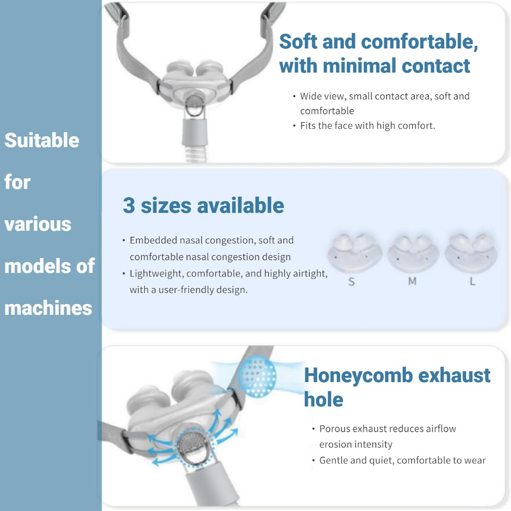 Yuwell Nasal Pillow CPAP Mask,Replacement CPAP Nose Pillow System Assembly with 3 nasal cushion