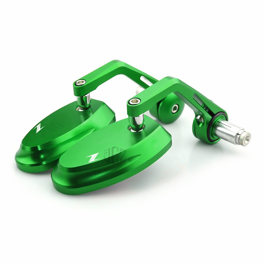 Z LOGO Motorcycle Blue Glass Handle Bar End CNC Aluminum Oval Rear View Side Mirrors for Kawasaki Z250 Z400 Z650 Z750 Z800 Z900 Z1000