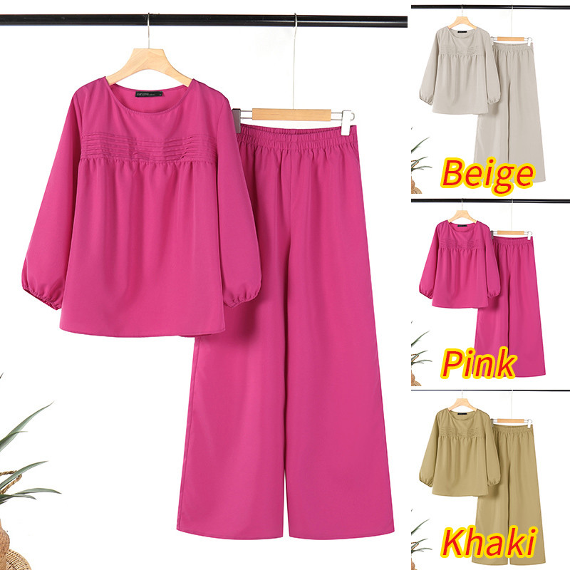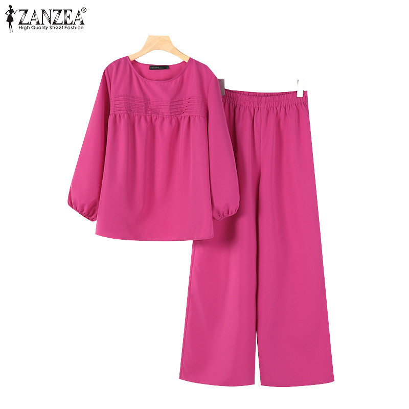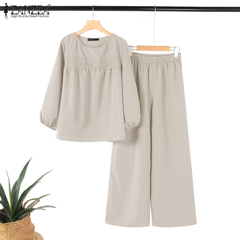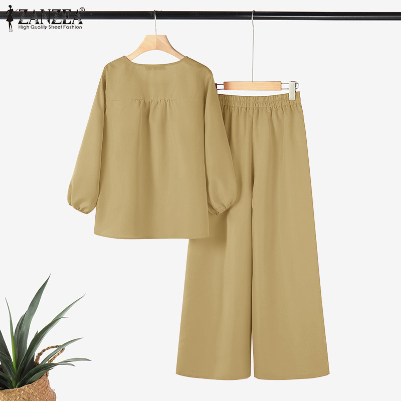 ZANZEA Womens Spring Casual 3/4 Sleeve Loose Wide Leg Pants Two Piece Sets