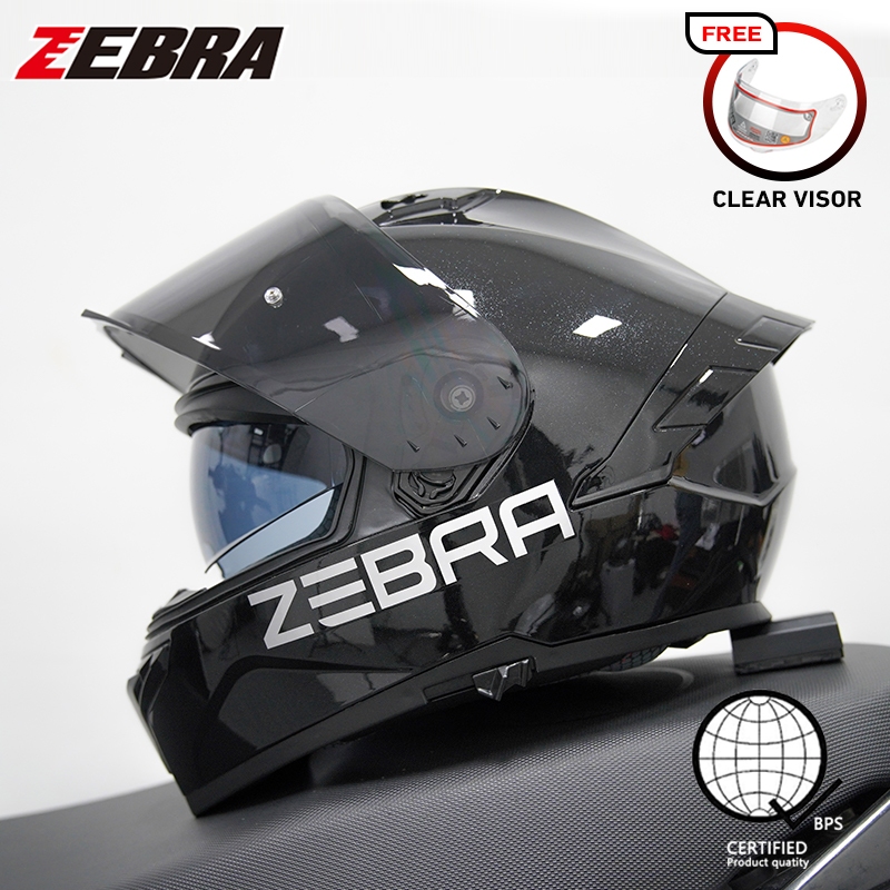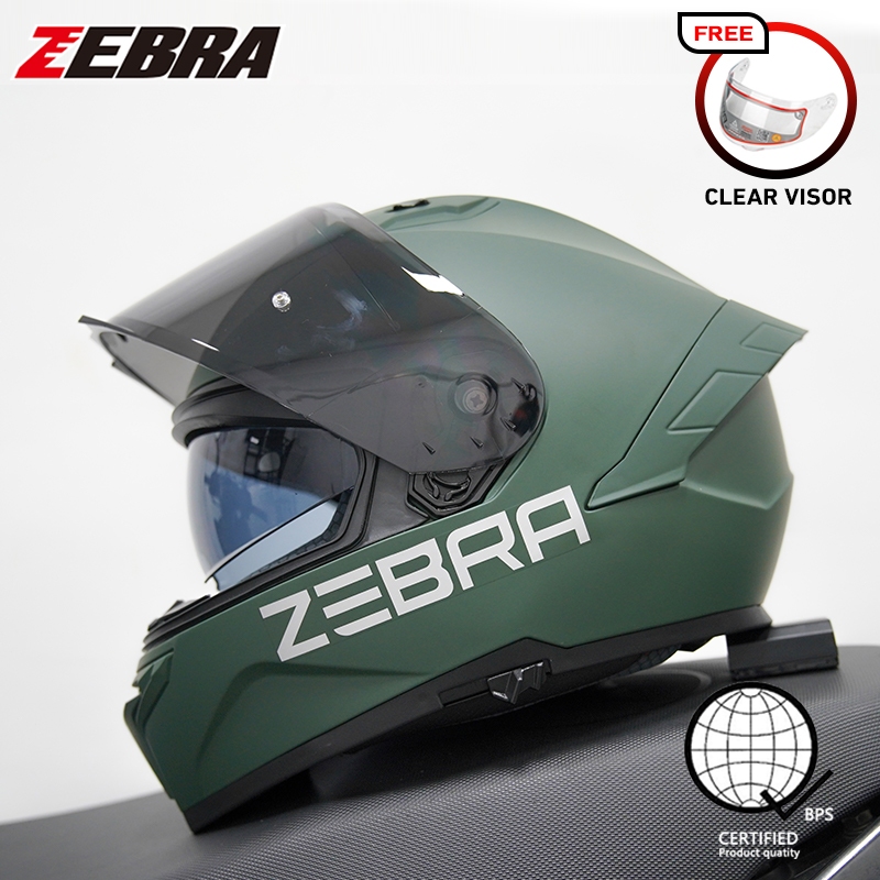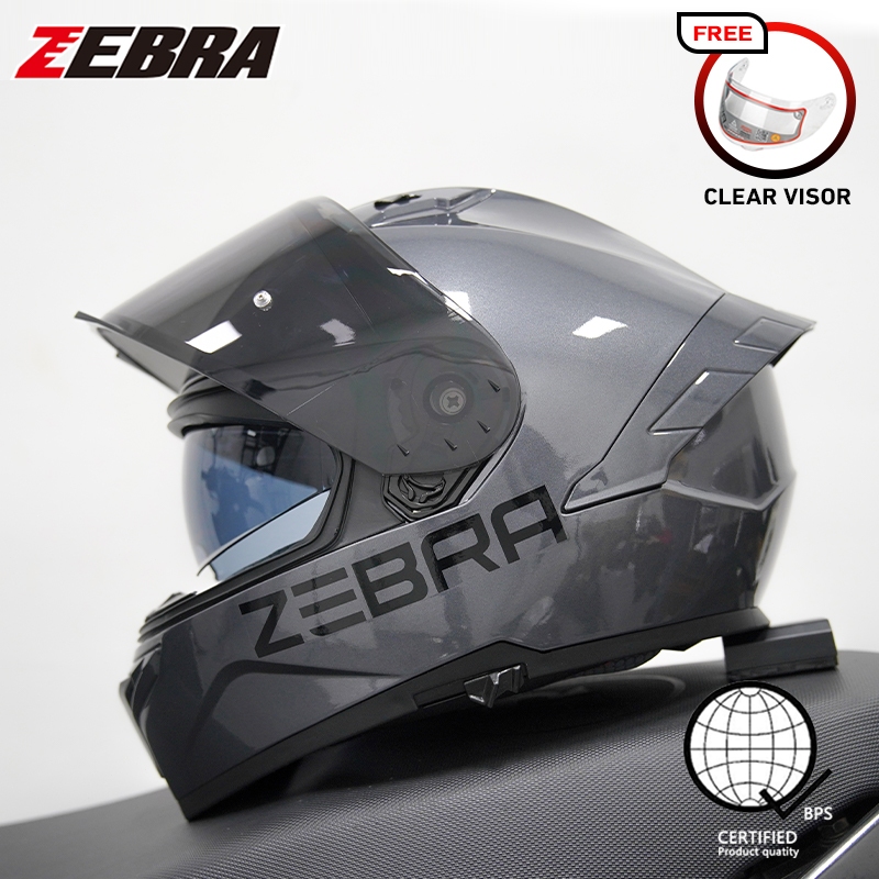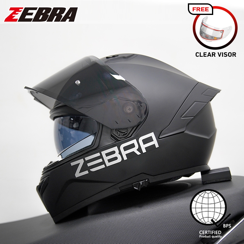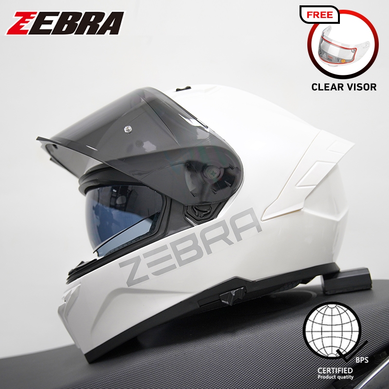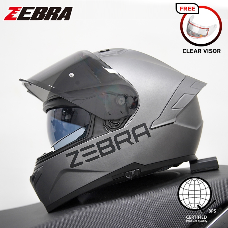 ZEBRA 879 PLAIN Motorcycle full face dual visor helmet for men and women with free visor