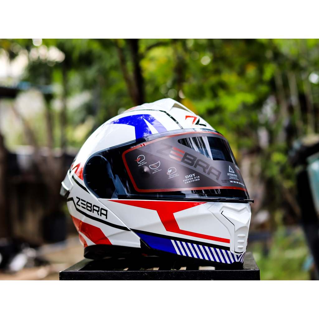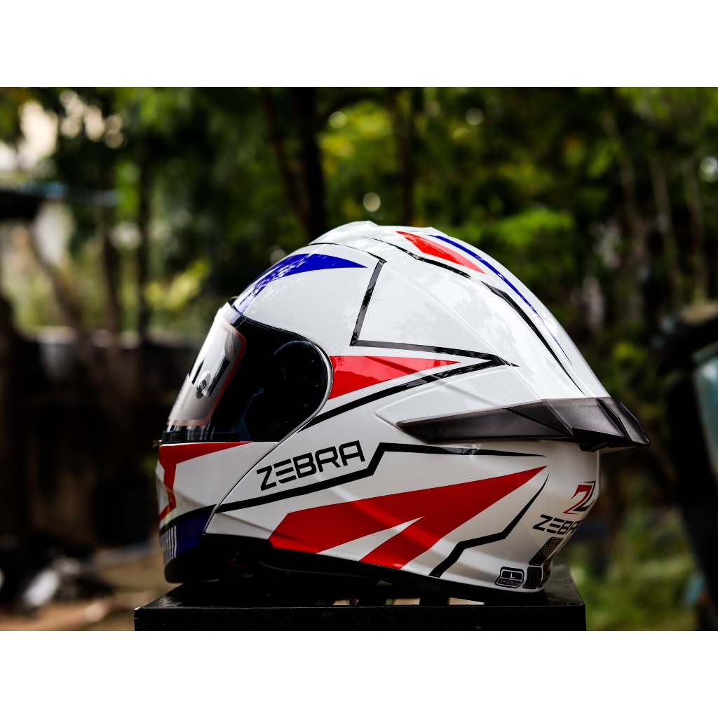 ZEBRA HELMET RITZY #1 EDGE WHITE RED MODULAR DUAL VISOR WITH FREE CLEAR LENS