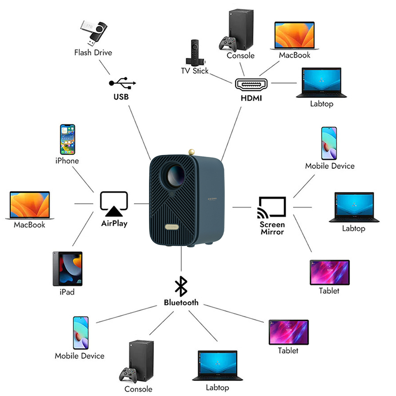 ZEEMR M1 Pro Smart Mini Projector 1080P 4K Decode HD Android 9.0 WIFI Lumos Projector