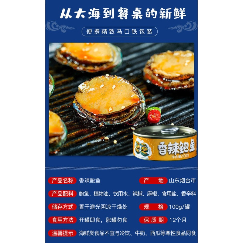 ZEJUN Spicy Abalone Small Seafood Cooked In Spicy Cans Ready To Eat 100g